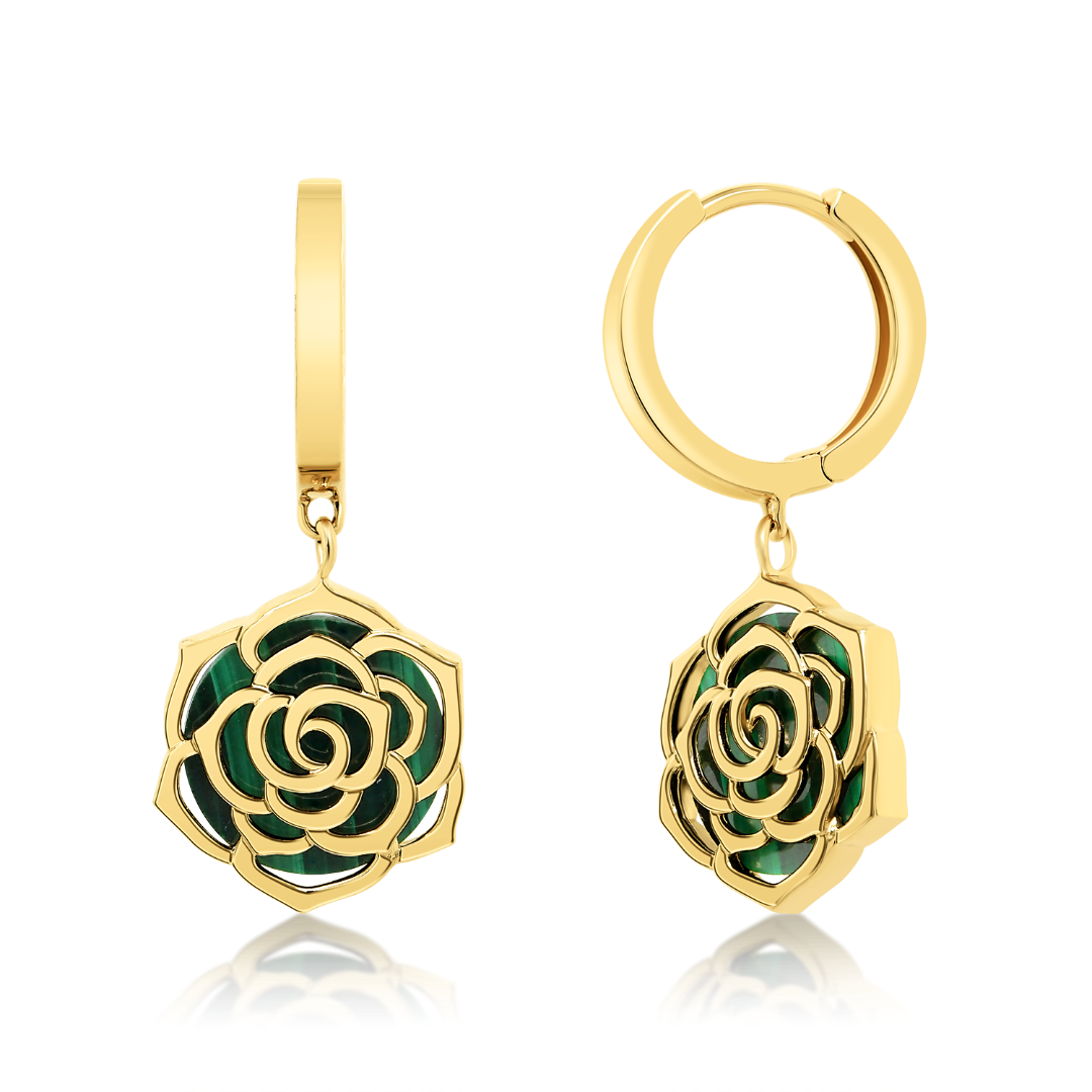 Cercei din aur galben de 14K cu Malachit