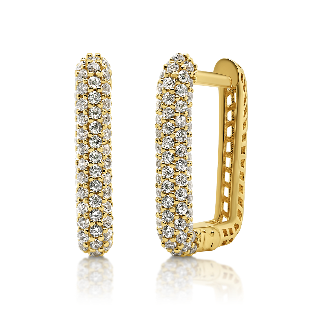 Cercei din aur galben de 14K cu pietre Cubic Zirconia albe.
