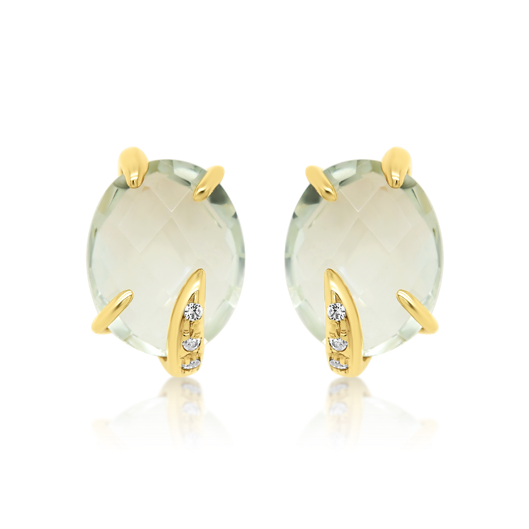 Cercei din aur galben de 14K cu pietre Cubic Zirconia.