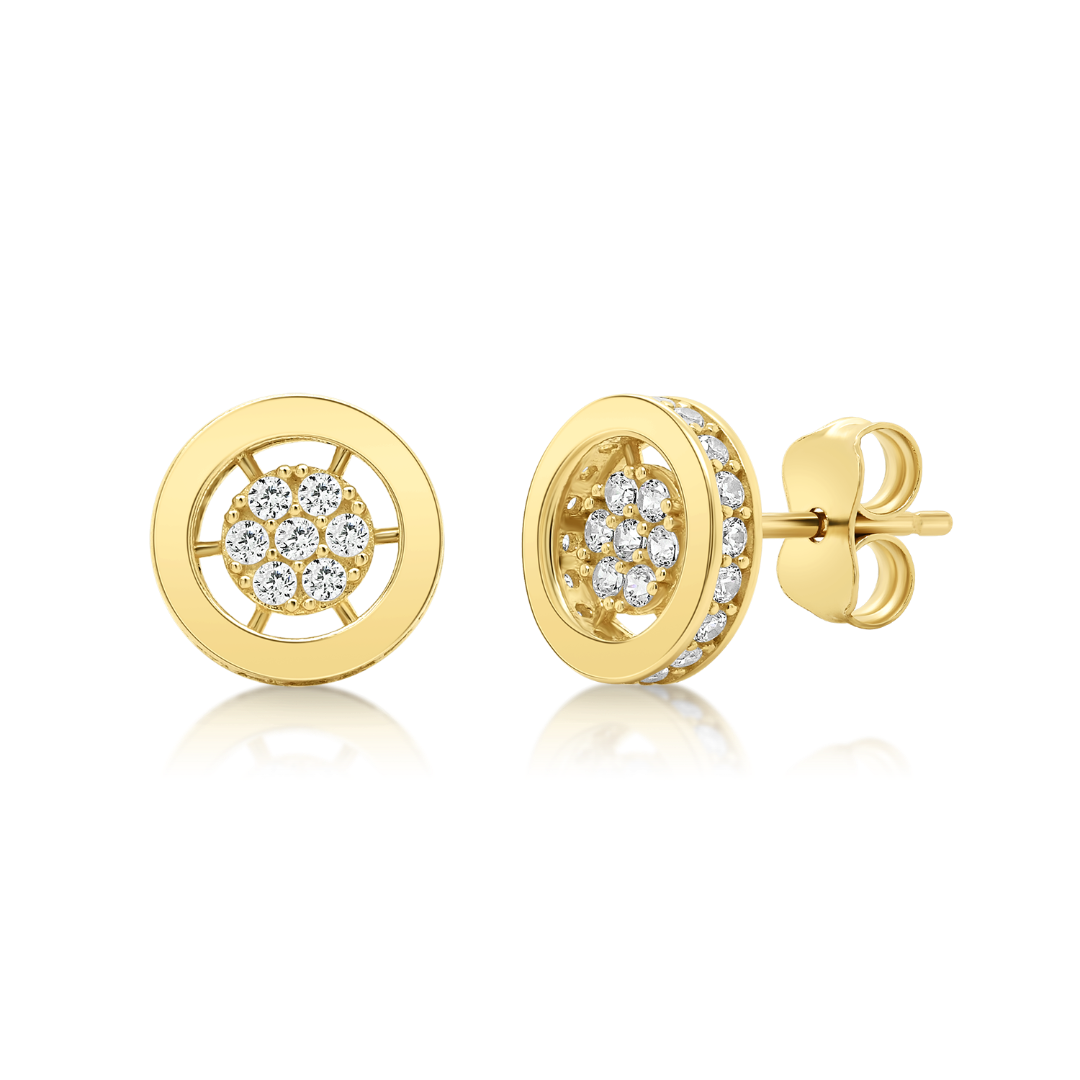 Cercei din aur galben de 14K cu pietre cubic zirconia.