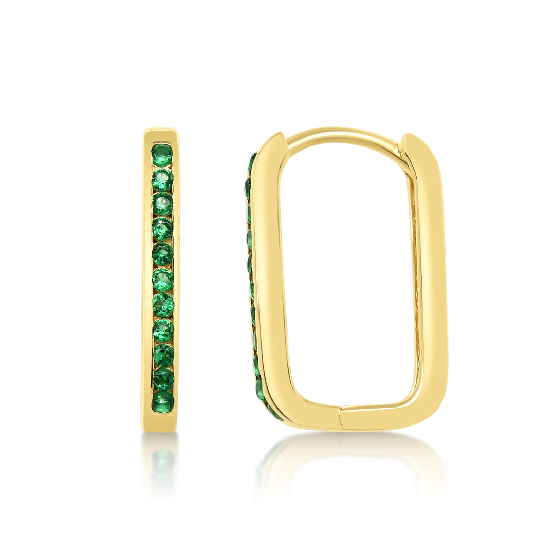 Cercei din aur galben de 14K cu pietre cubic zirconia verzi.