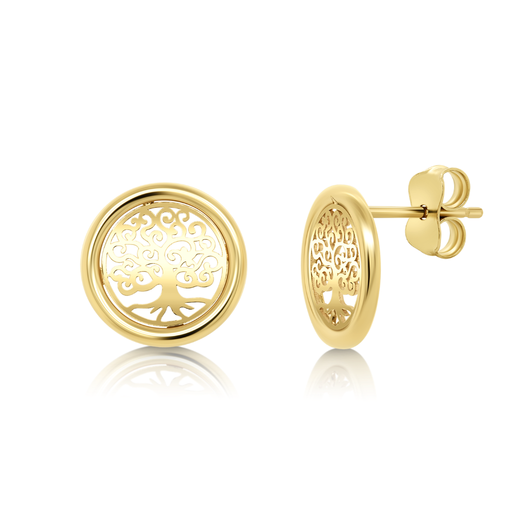 Cercei din aur galben de 14K cu pomul vieții.