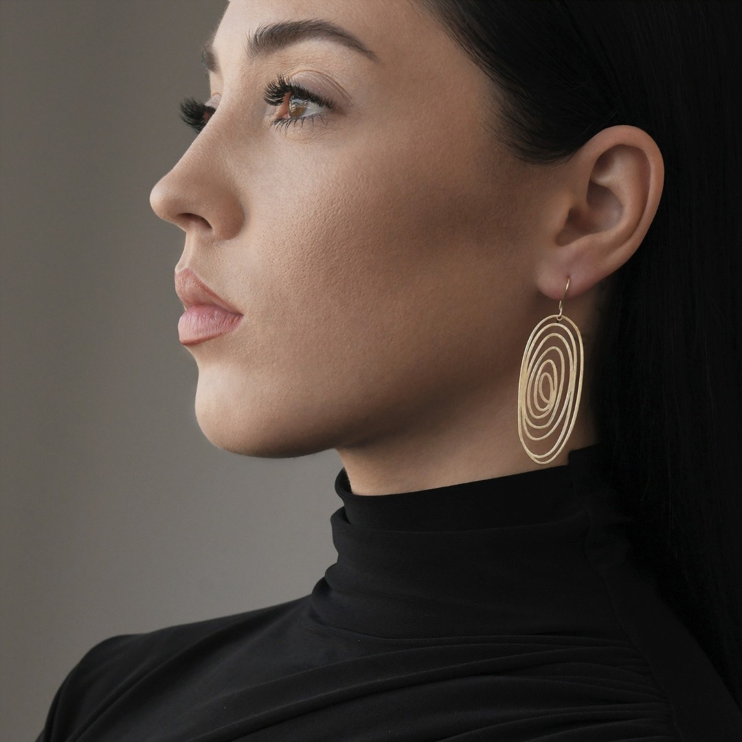 Cercei cu efect satinat din aur galben de 14K.
