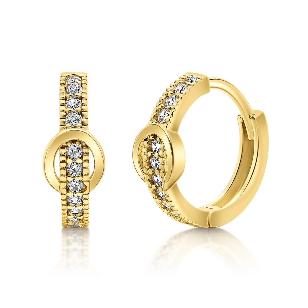 Cercei pentru copii din aur galben de 14K, cu pietre Cubic Zirconia.