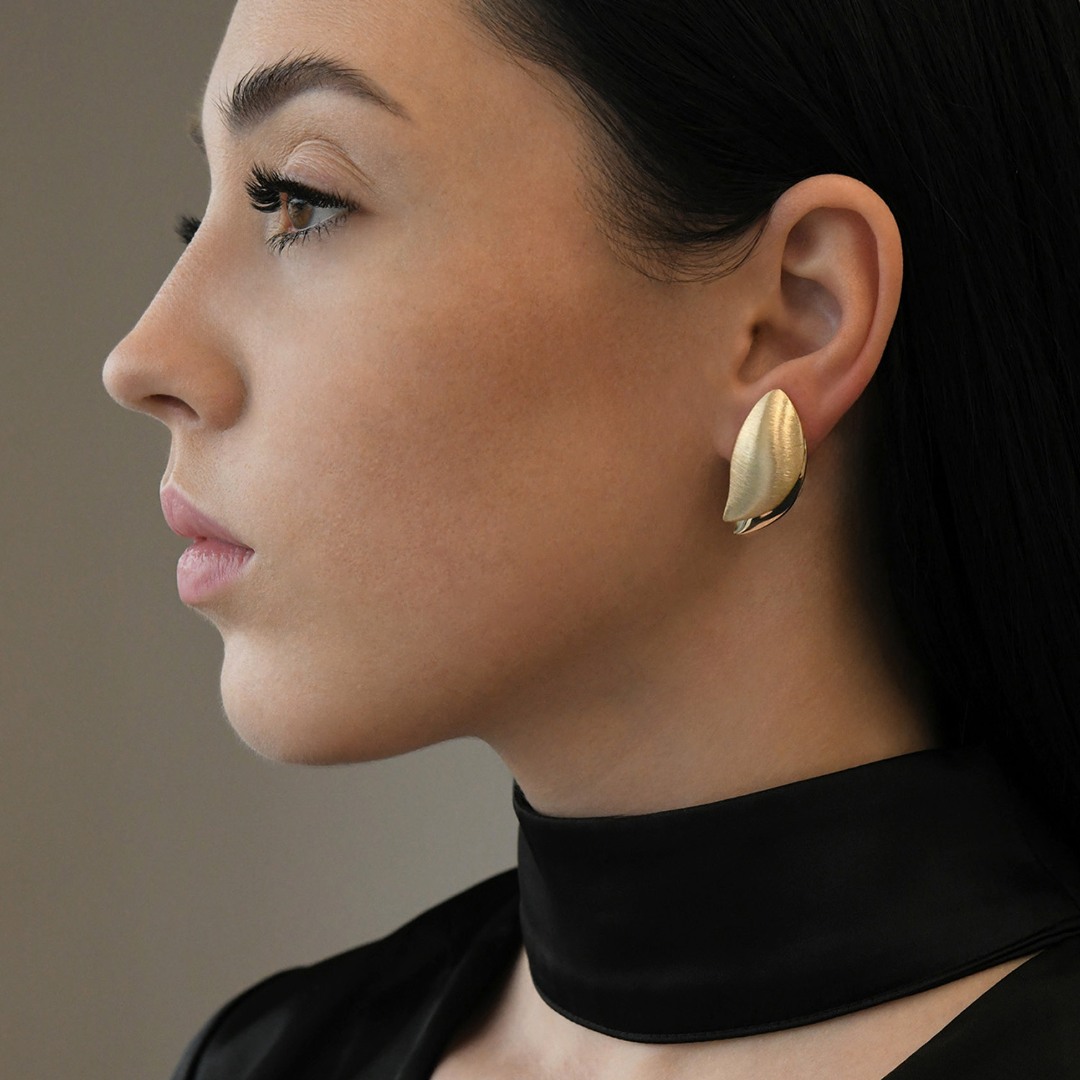 Cercei cu efect satinat din aur galben de 14K.