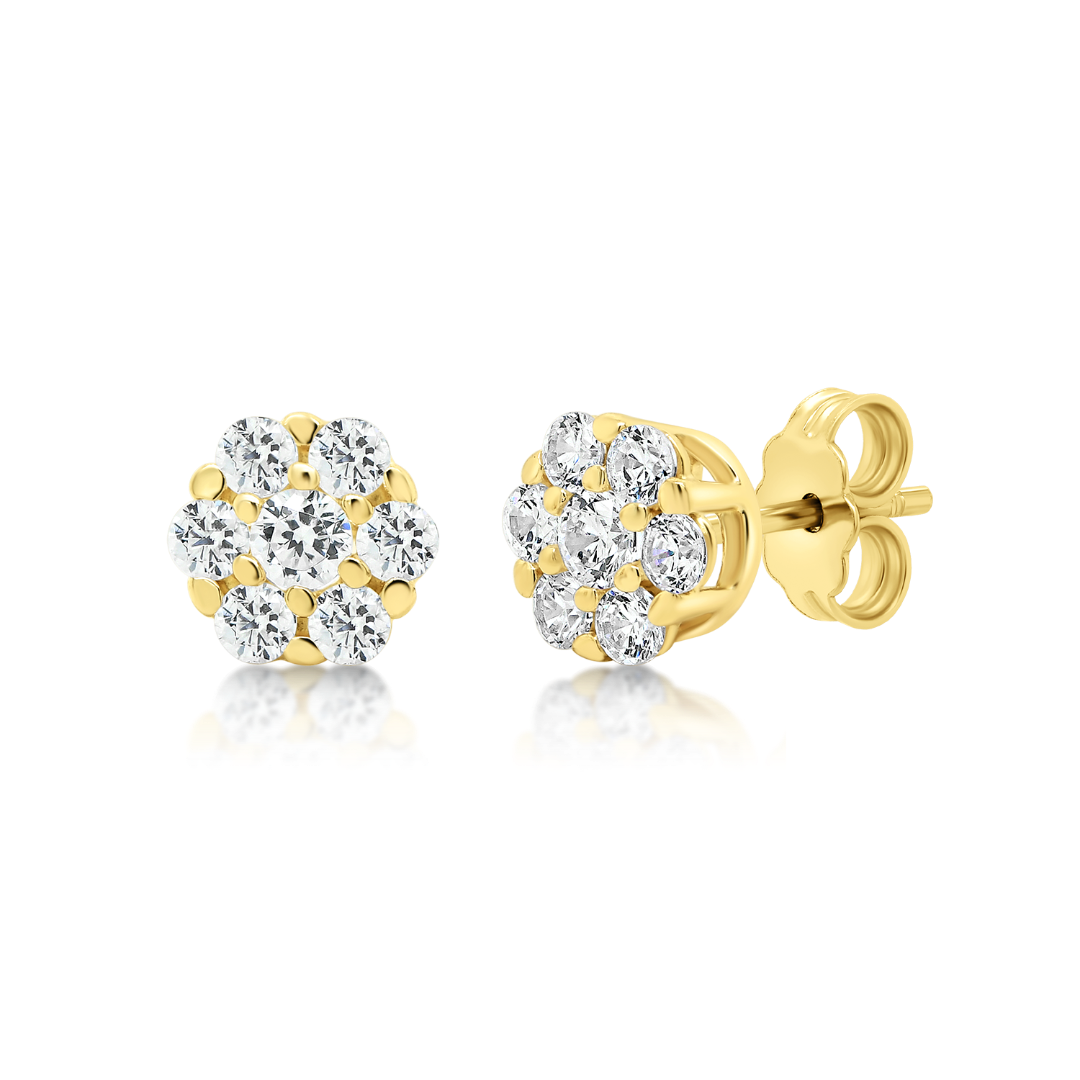 Cercei din aur galben de 14K cu pietre cubic zirconia.