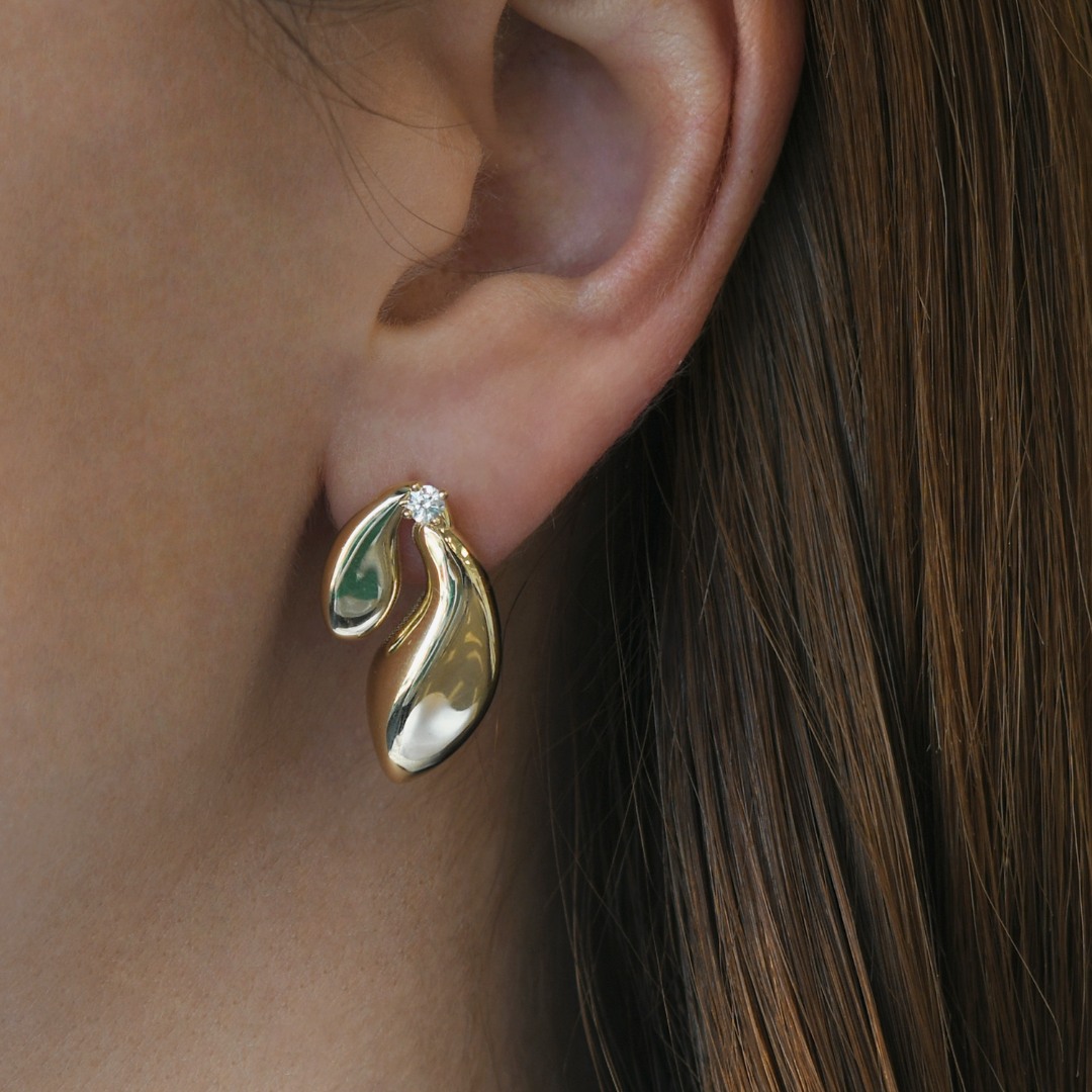 Cercei din aur galben de 14K cu pietre cubic zirconia.