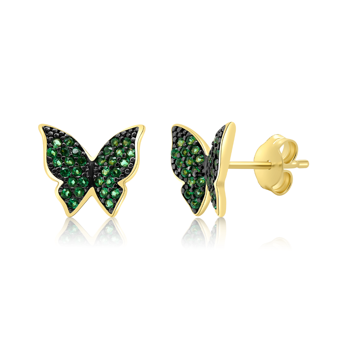 Cercei în formă de fluturi din aur galben de 14K cu zirconia colorate.