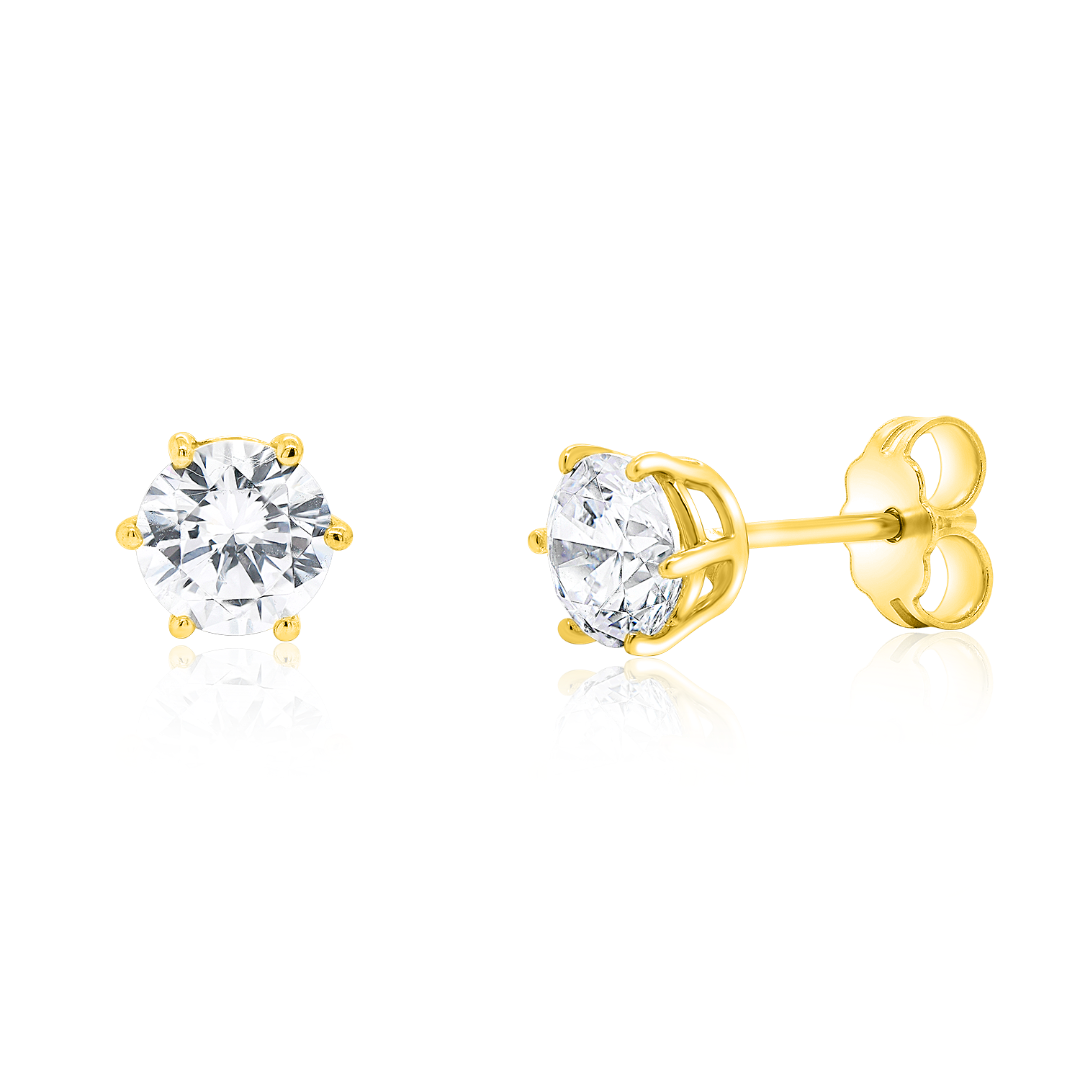 Cercei din aur galben de 14K cu pietre Zirconia incolore.