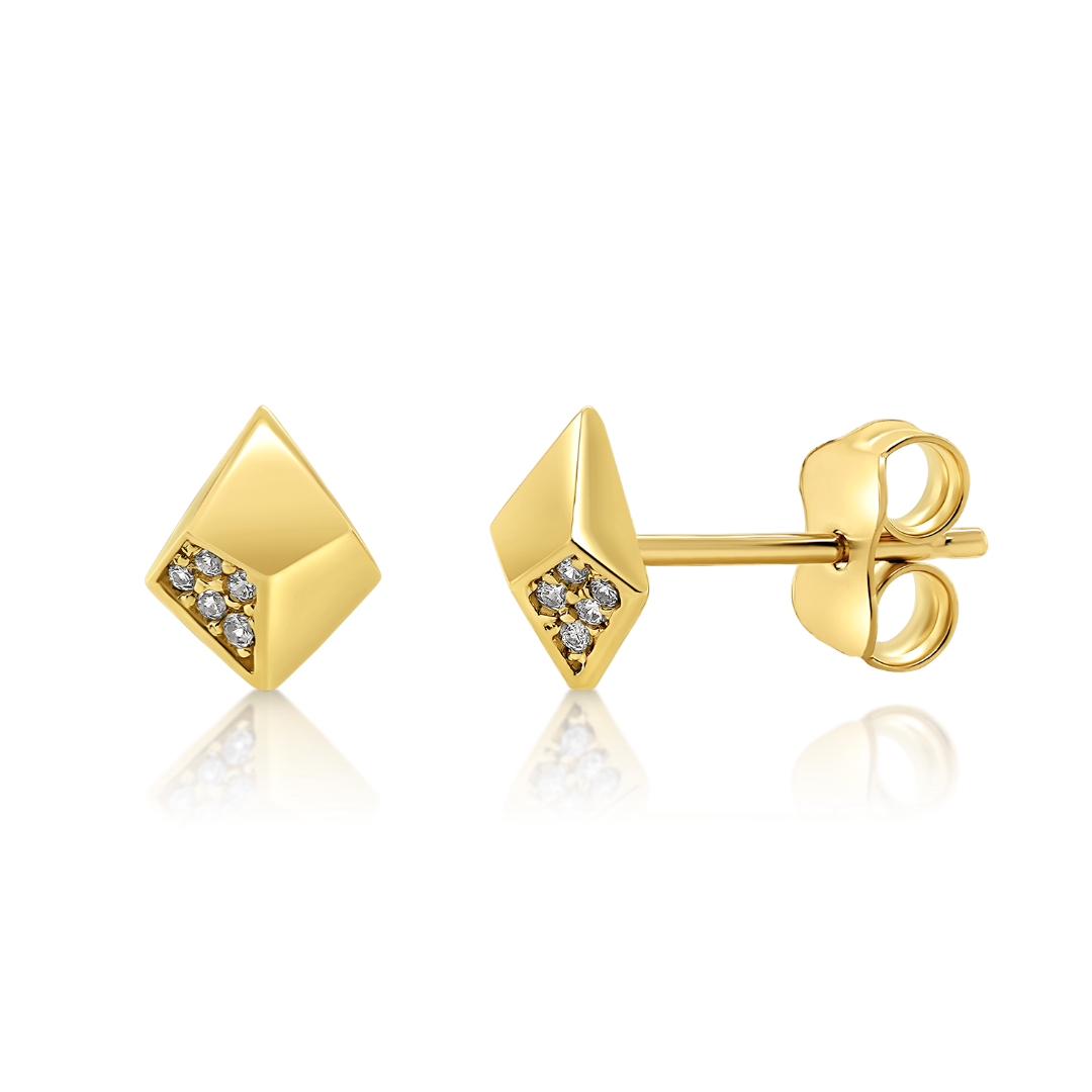 Cercei din aur galben de 14K cu zirconii incolore.