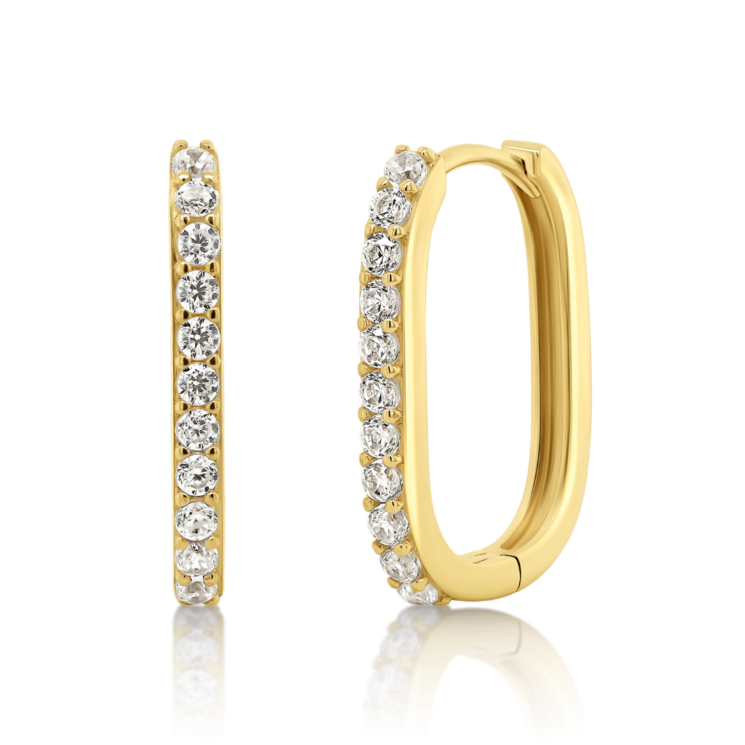 Cercei din aur galben de 14K cu pietre cubic zirconia.