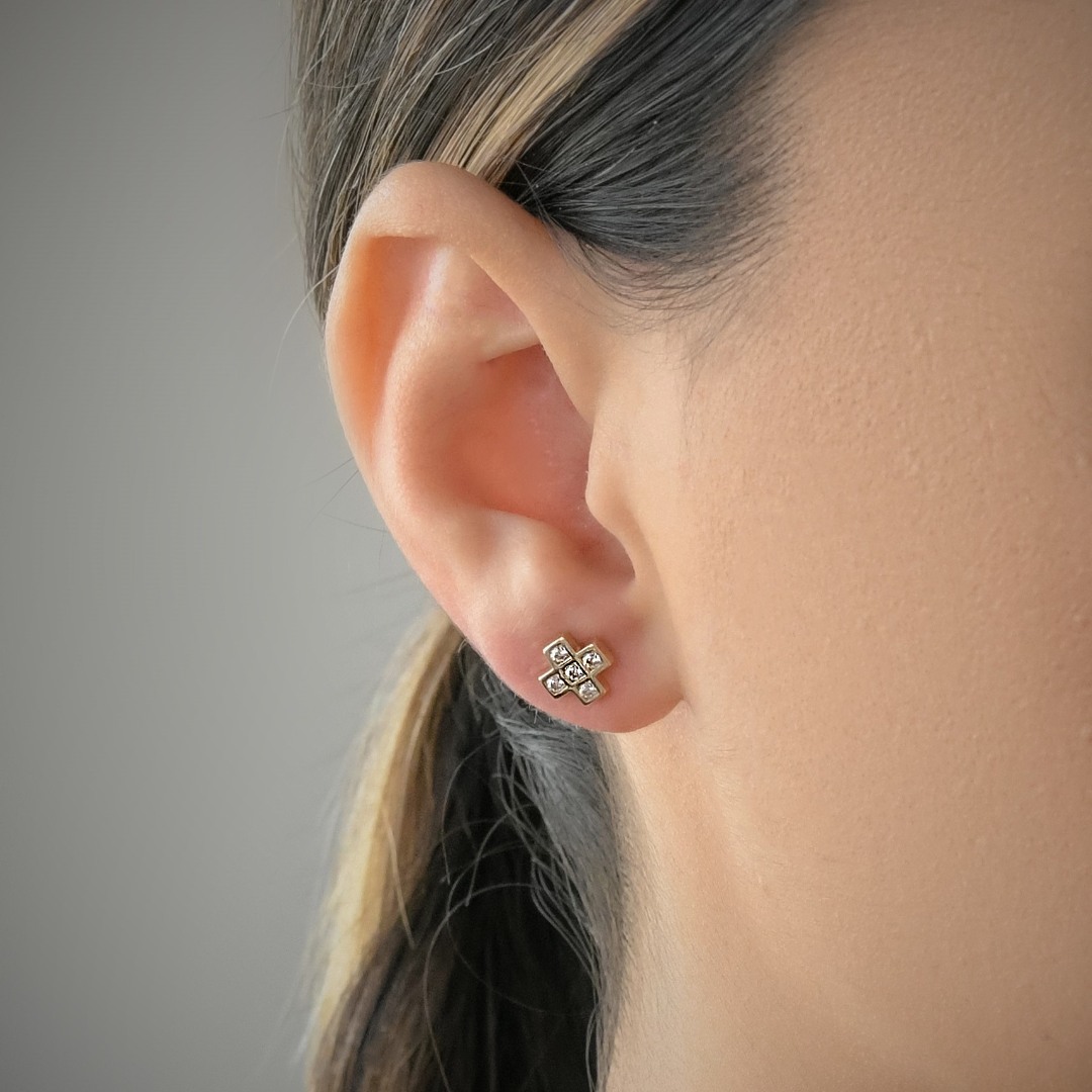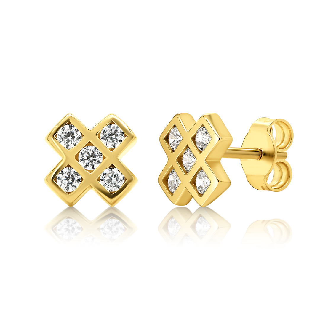 Cercei din aur galben de 14K cu pietre Cubic Zirconia.