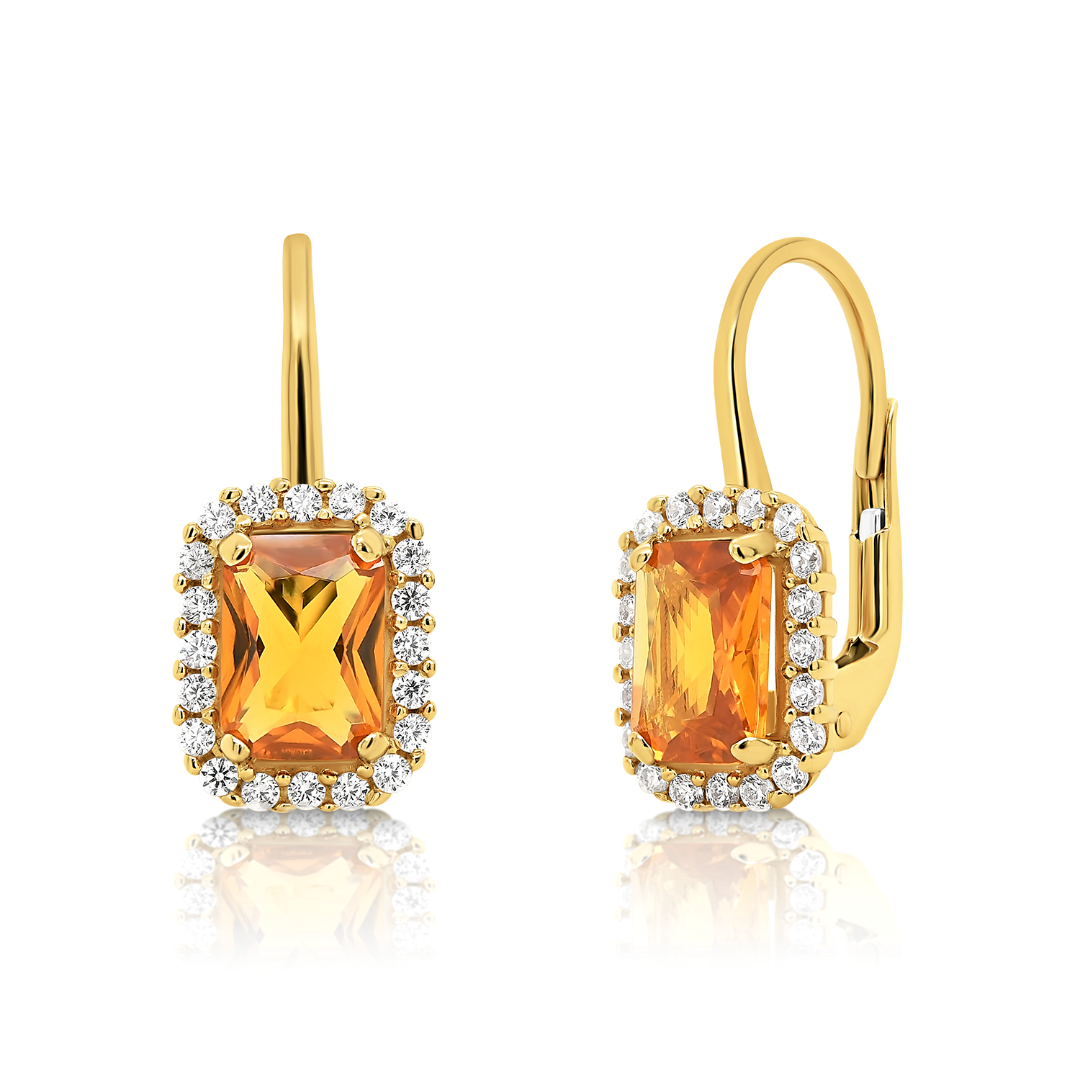 Cercei din aur galben de 14K cu pietre cubic zirconia.