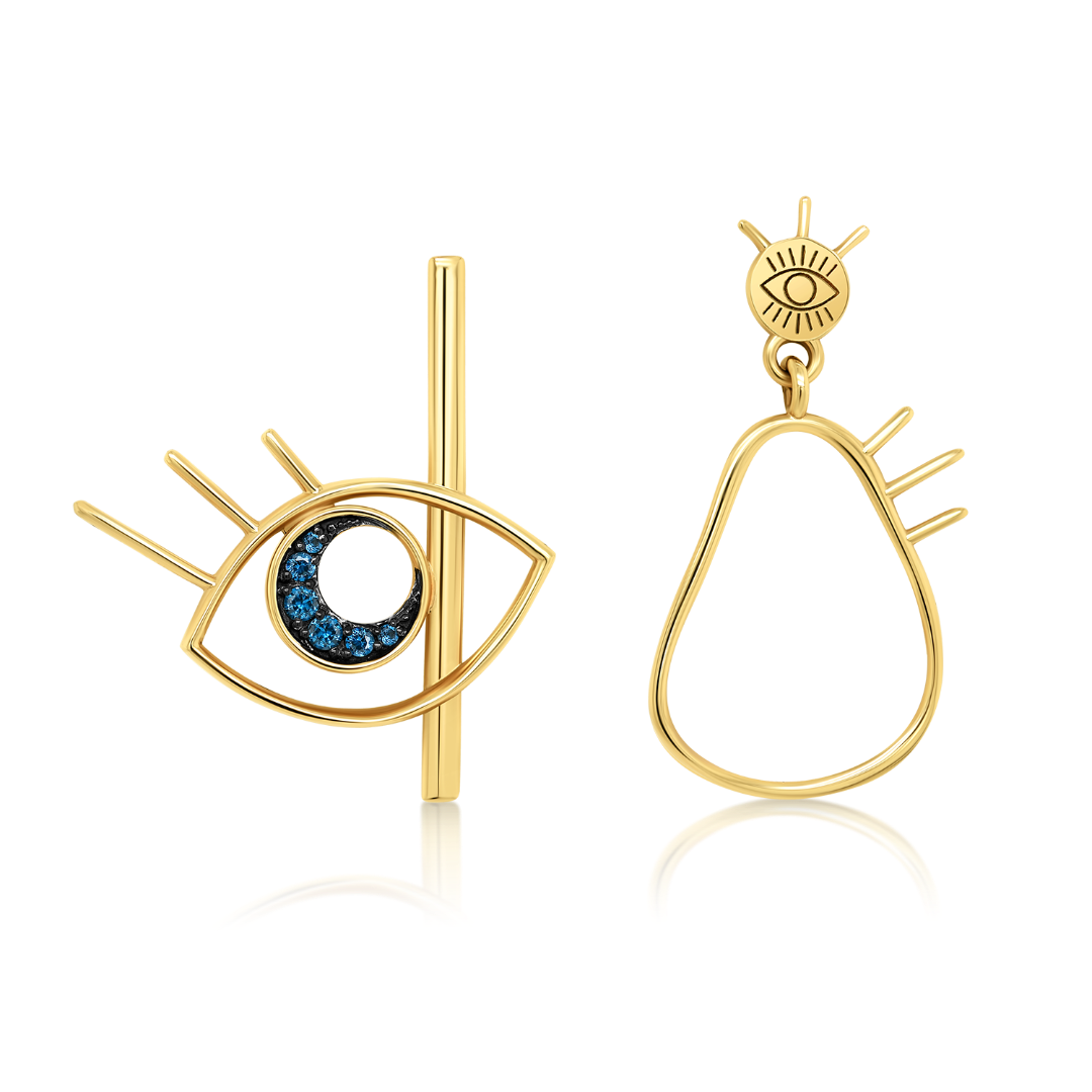Cercei din aur galben de 14K cu pietre cubic zirconia.