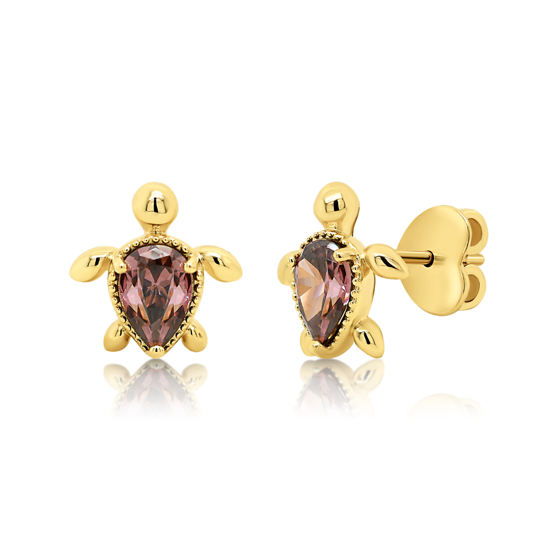 Cercei din aur galben de 14K cu pietre cubic zirconia.