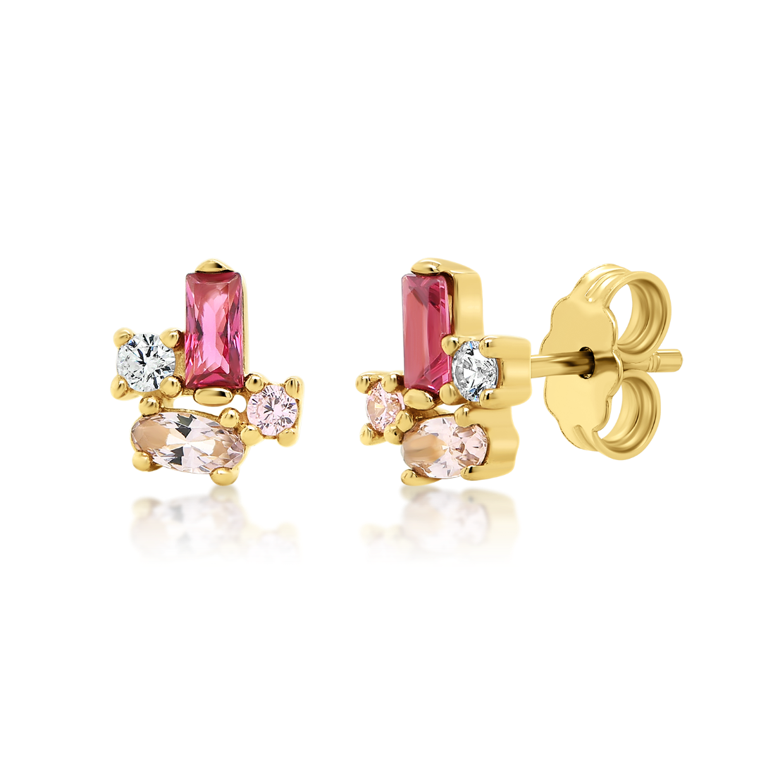 Cercei din aur galben de 14K cu pietre cubic zirconia.