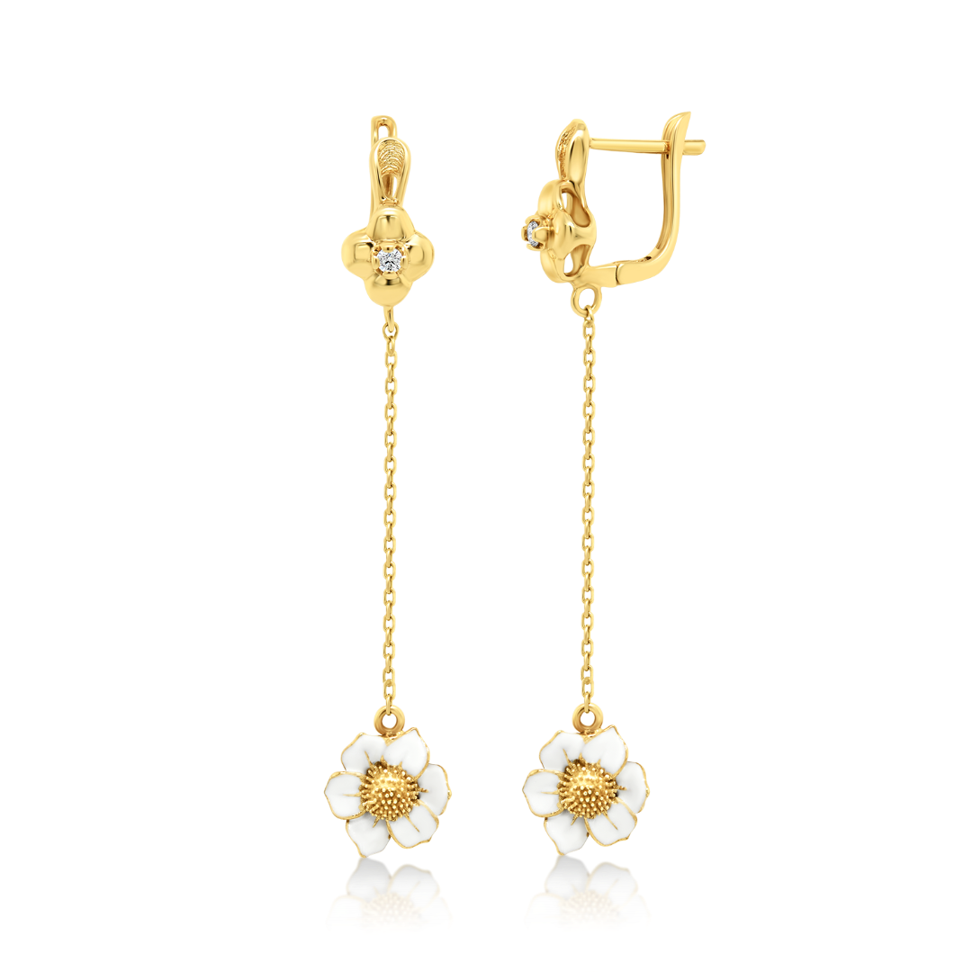 Cercei din aur galben de 14K cu Diamante naturale de 0.06ct și Email alb.