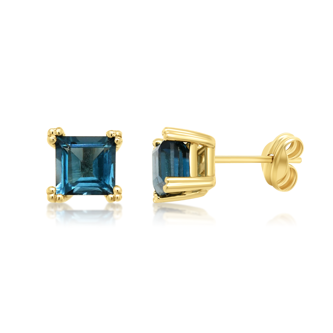 Cercei din aur galben de 14K cu London Blue Topaz