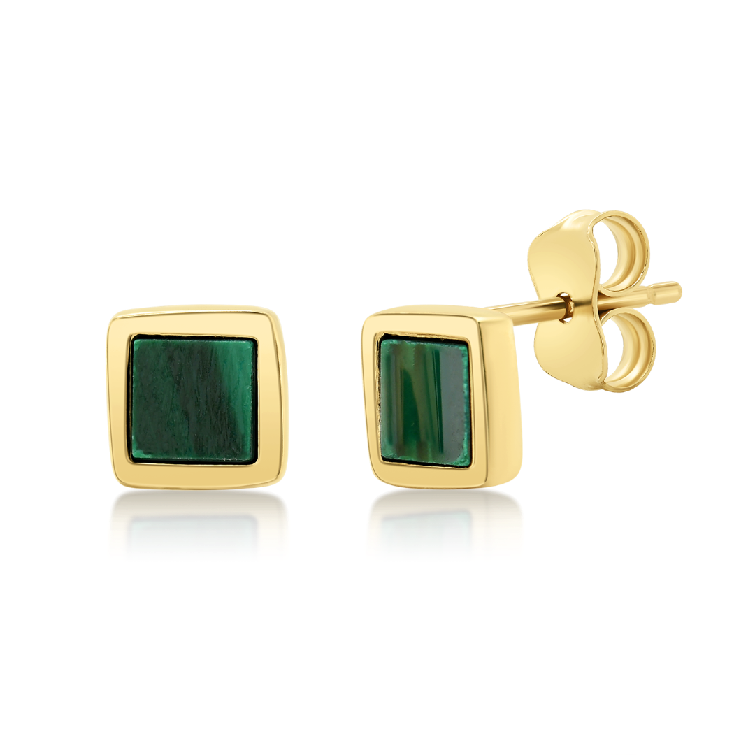 Cercei din aur galben de 14K cu Malachit