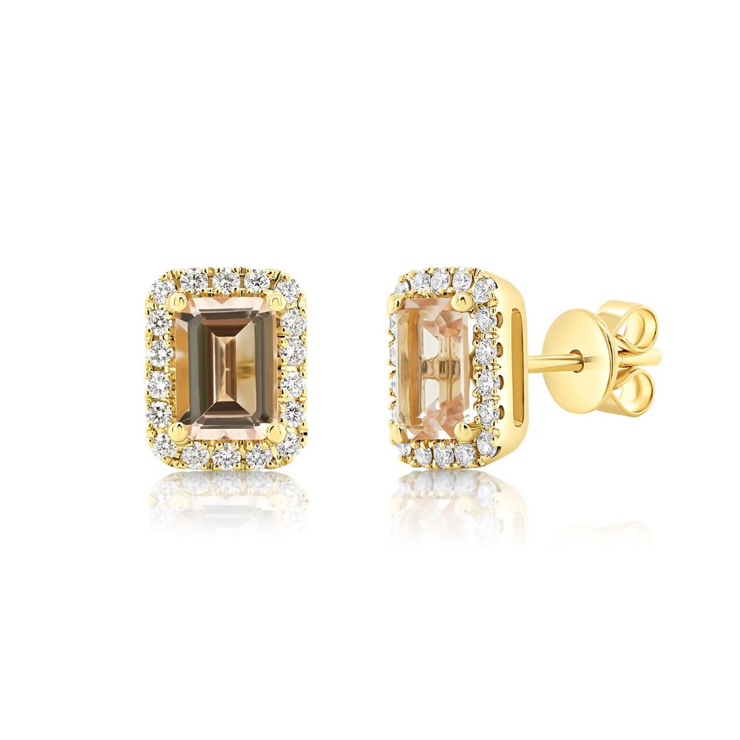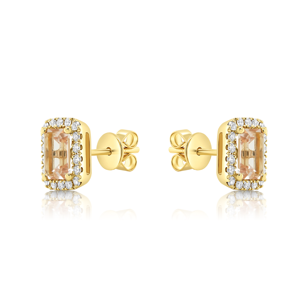 Cercei din aur galben de 14K cu Morganite și Diamante naturale