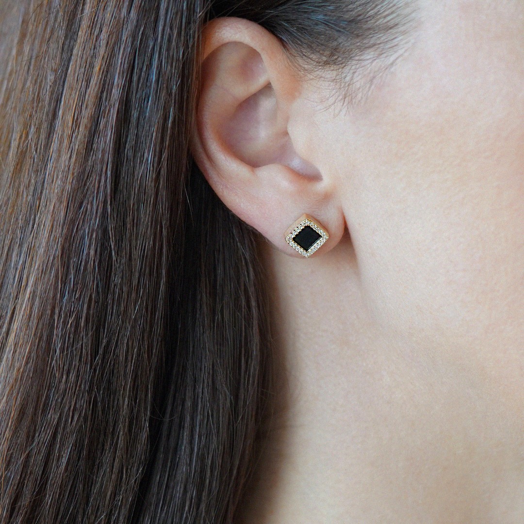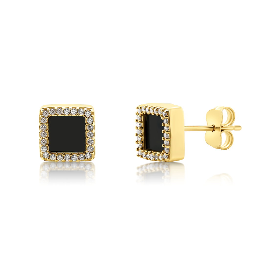 Cercei din aur galben de 14K cu Onix
