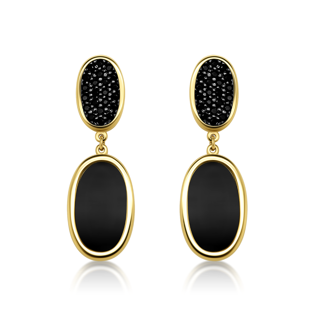 Cercei din aur galben de 14K, cu Onix și pietre cubic zirconia negre.