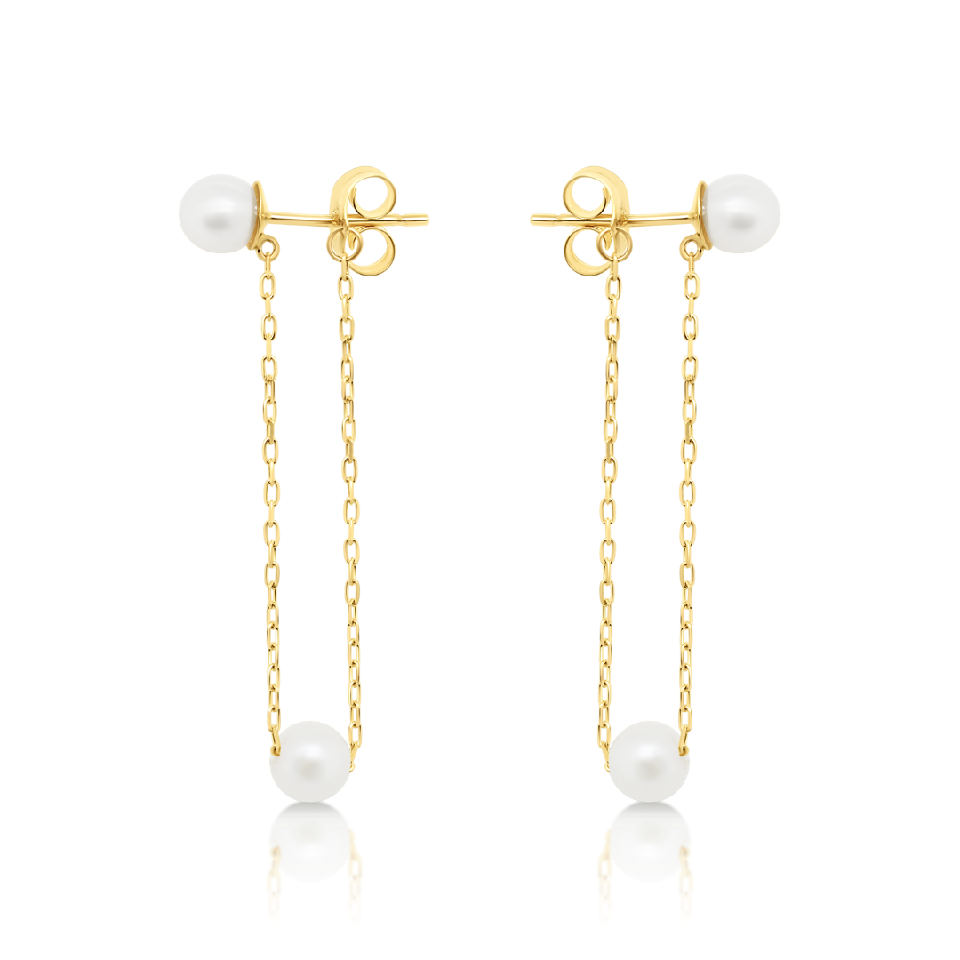 Cercei din aur galben de 14K cu Perle albe de cultură.