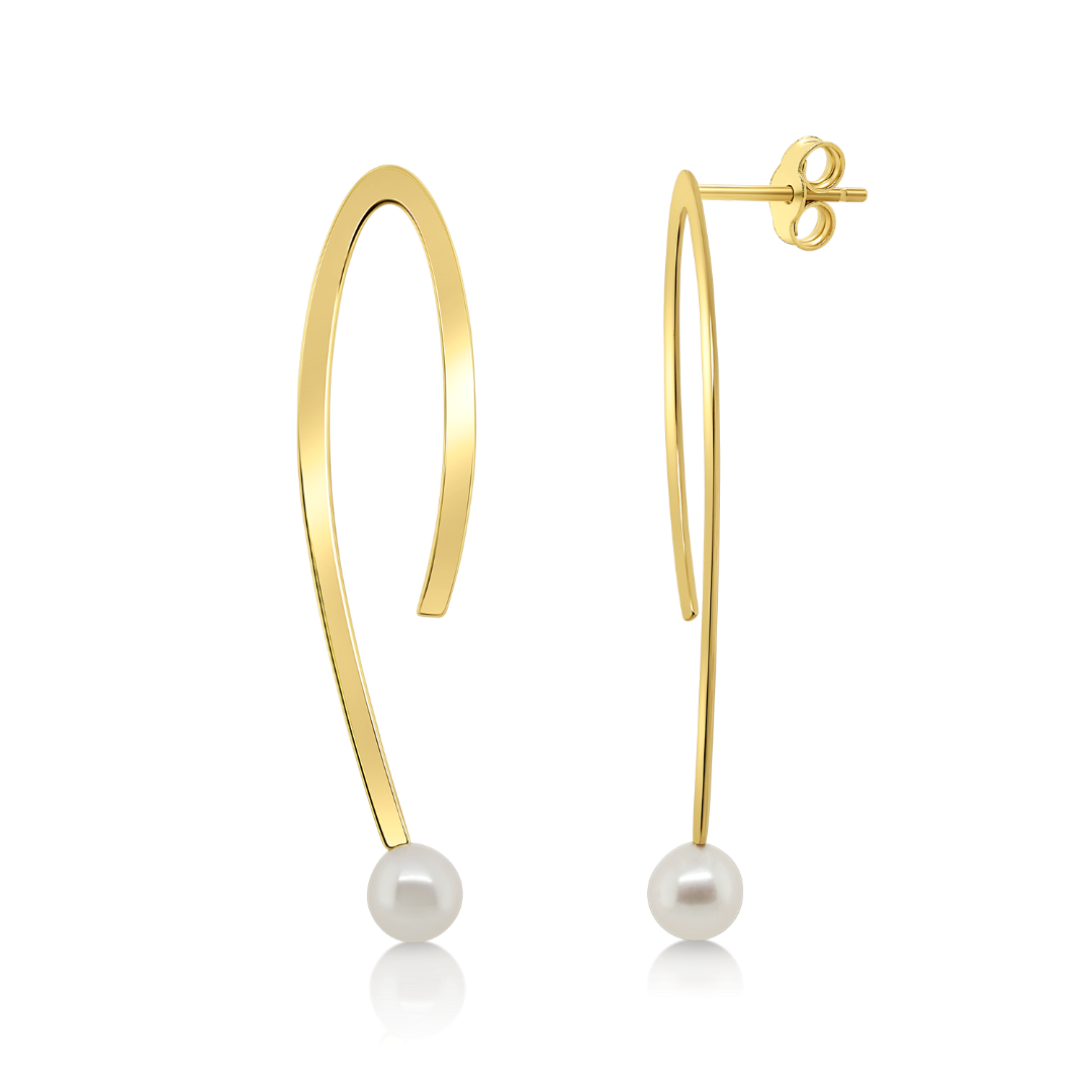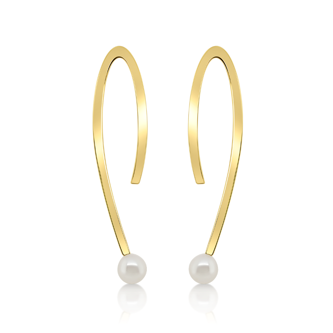 Cercei din aur galben de 14K cu Perle albe