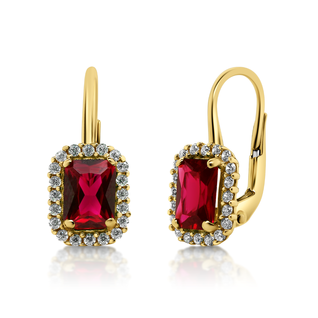 Cercei din aur galben de 14K cu pietre cubic zirconia.