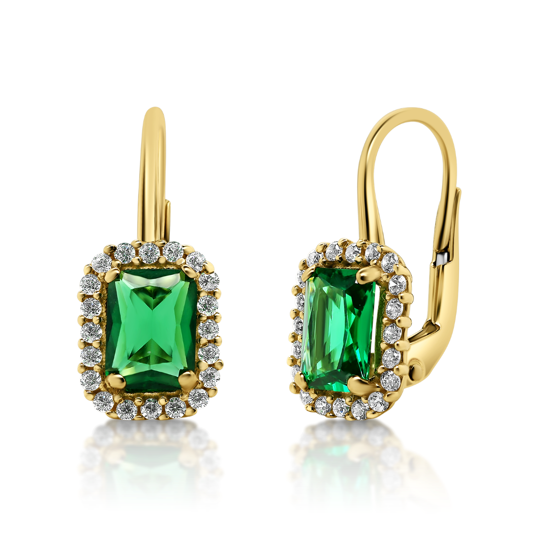 Cercei din aur galben de 14K cu pietre cubic zirconia.