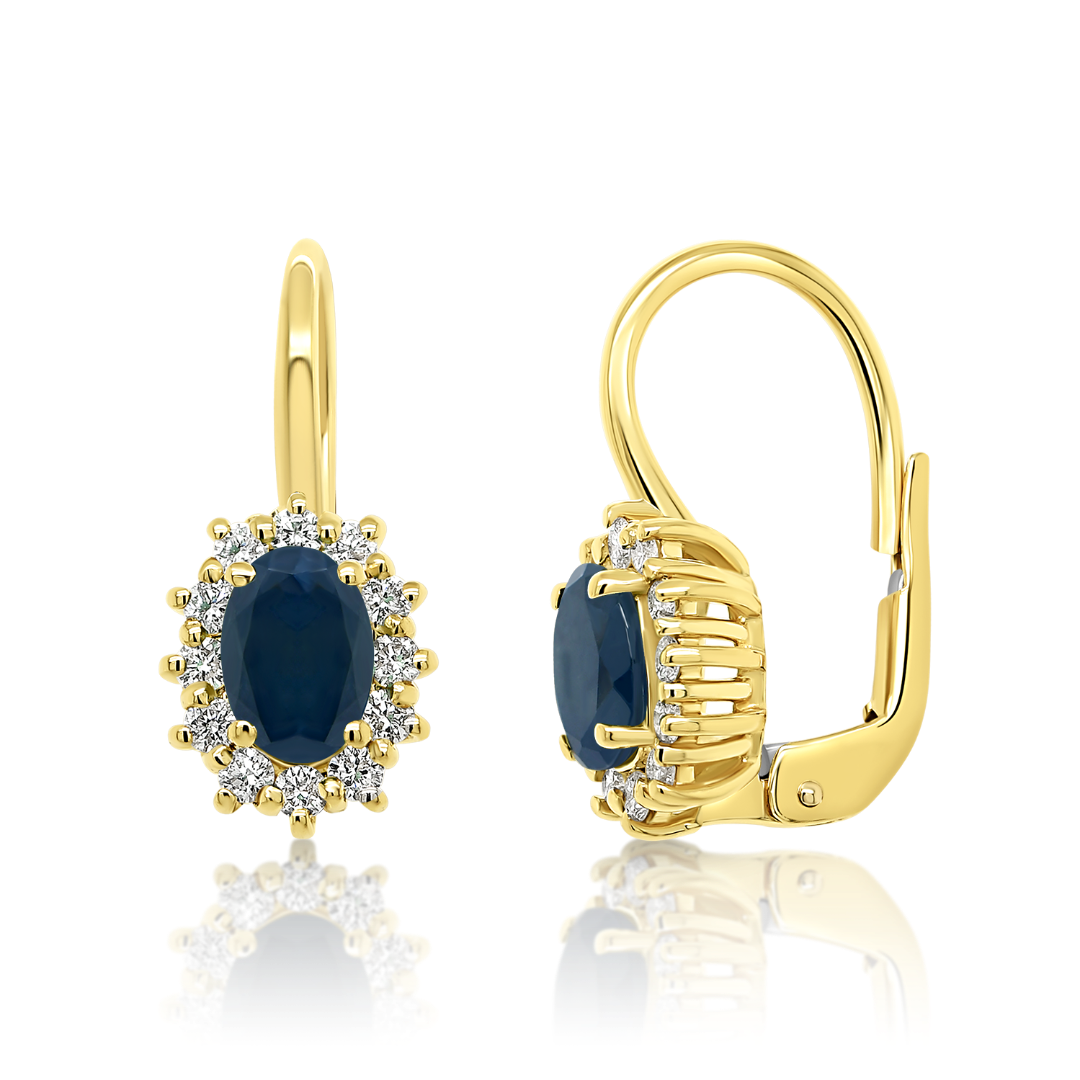 Cercei din aur galben de 14K cu pietre cubic zirconia si două pietre Corindon.