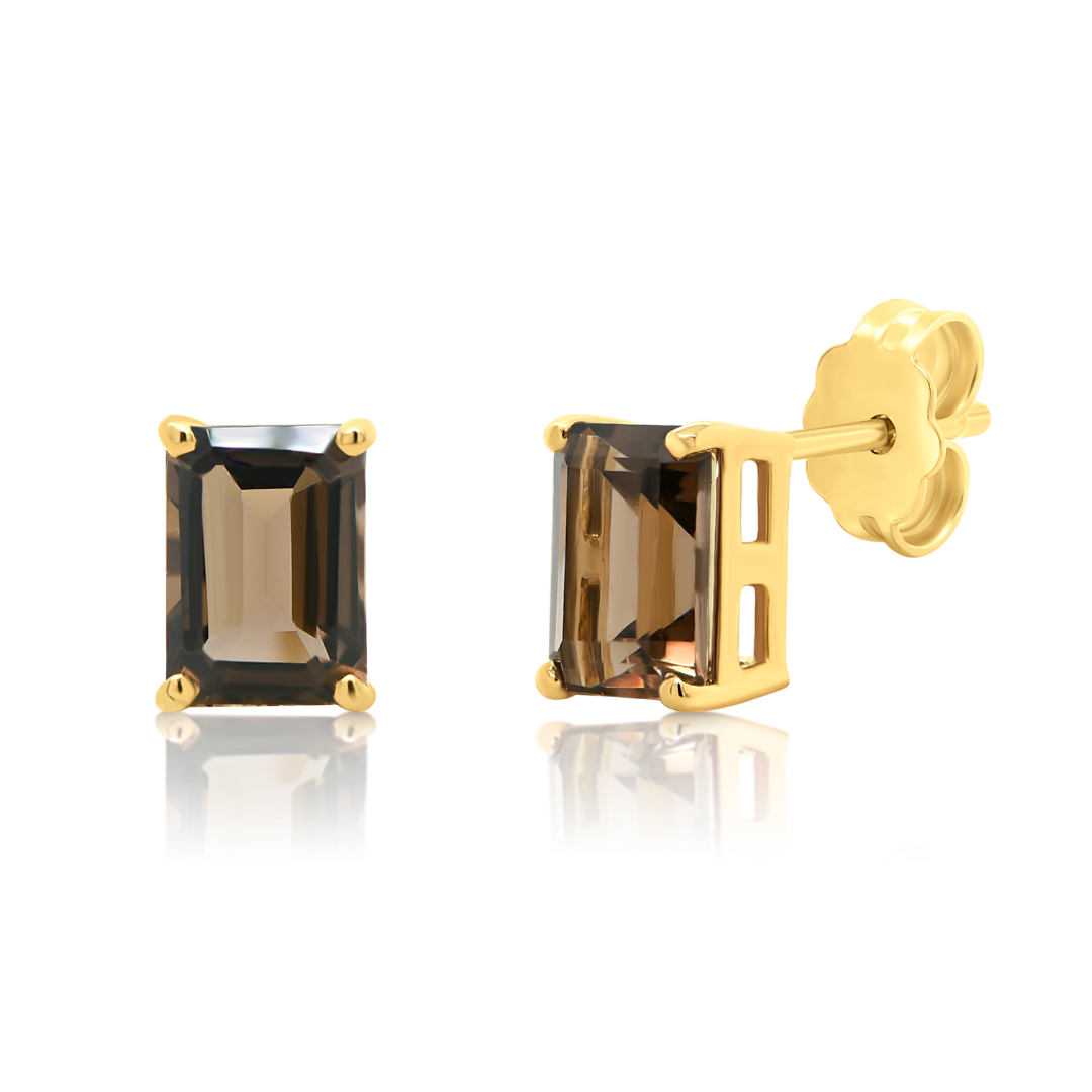 Cercei din aur galben de 14K cu Smoky Quartz