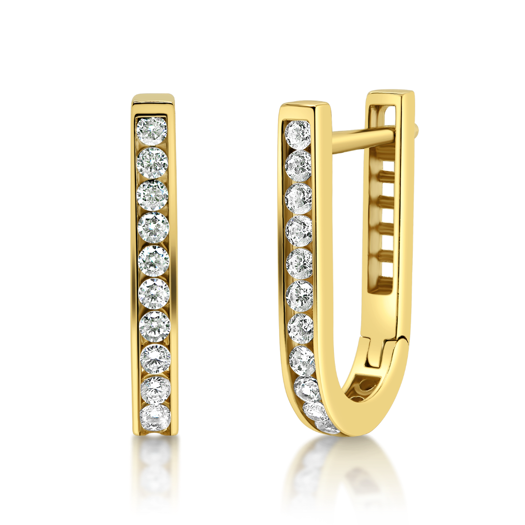 Cercei din aur galben de 14K cu pietre Cubic Zirconia albe.