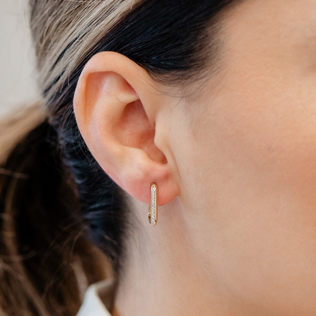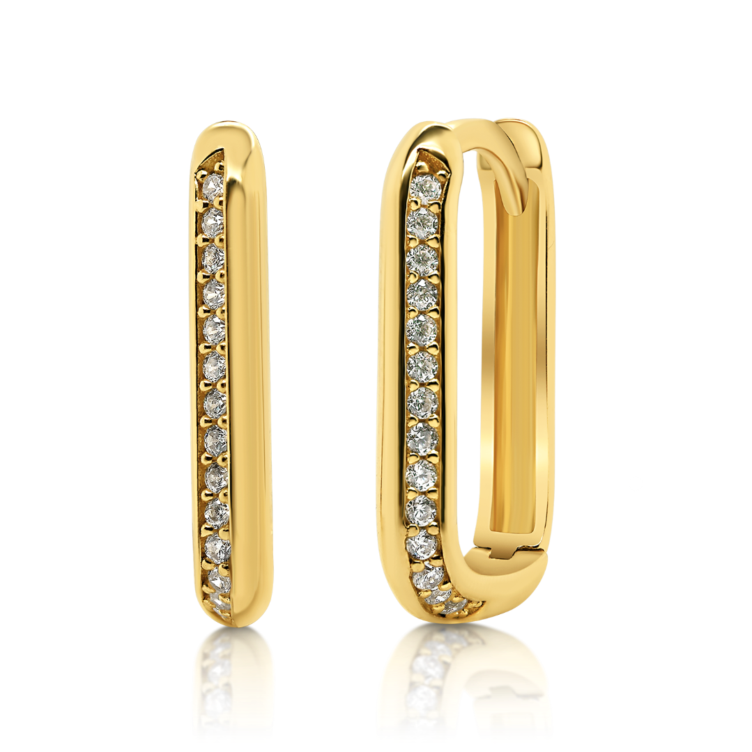 Cercei din aur galben de 14K cu pietre Cubic Zirconia albe.