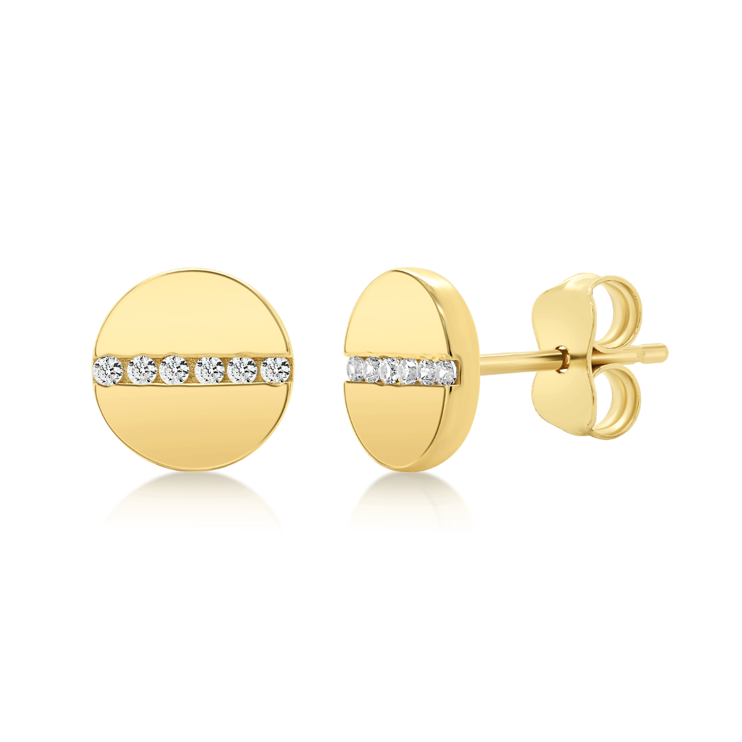 Cercei rotunzi din aur galben de 14K cu zirconii incolore.