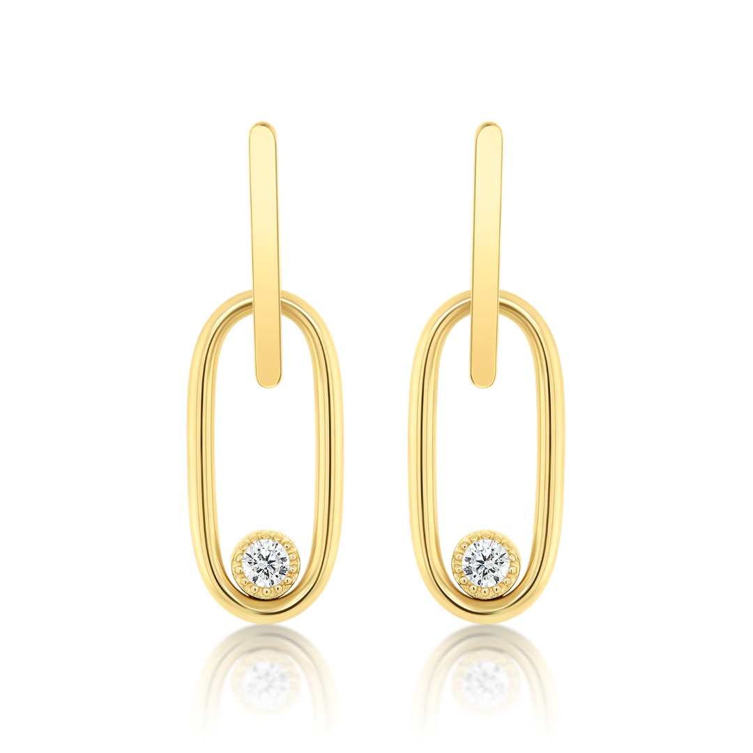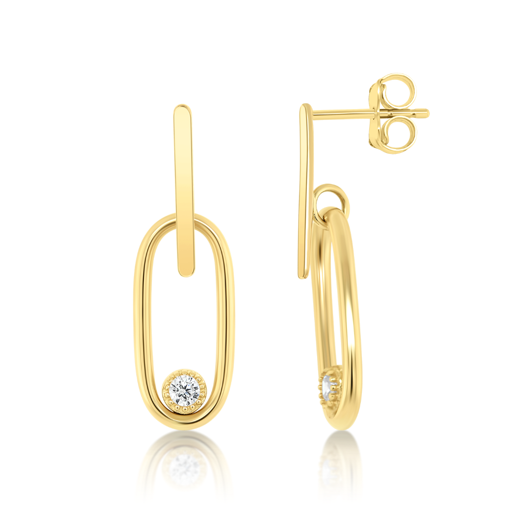 Cercei din aur galben de 14K cu pietre Cubic Zirconia.