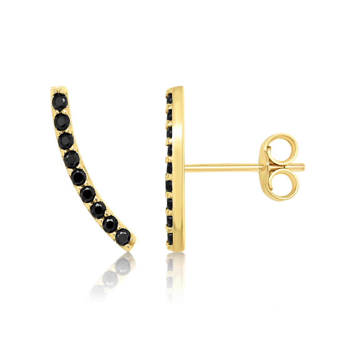 Cercei din aur galben de 14K cu pietre zirconia negre.