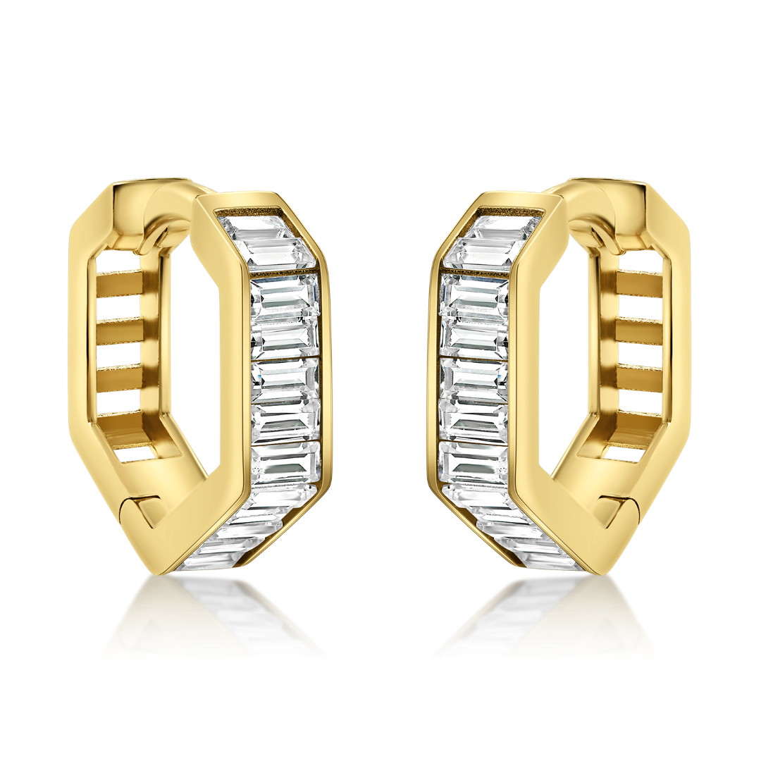 Cercei din aur galben de 14K cu pietre cubic zirconia.