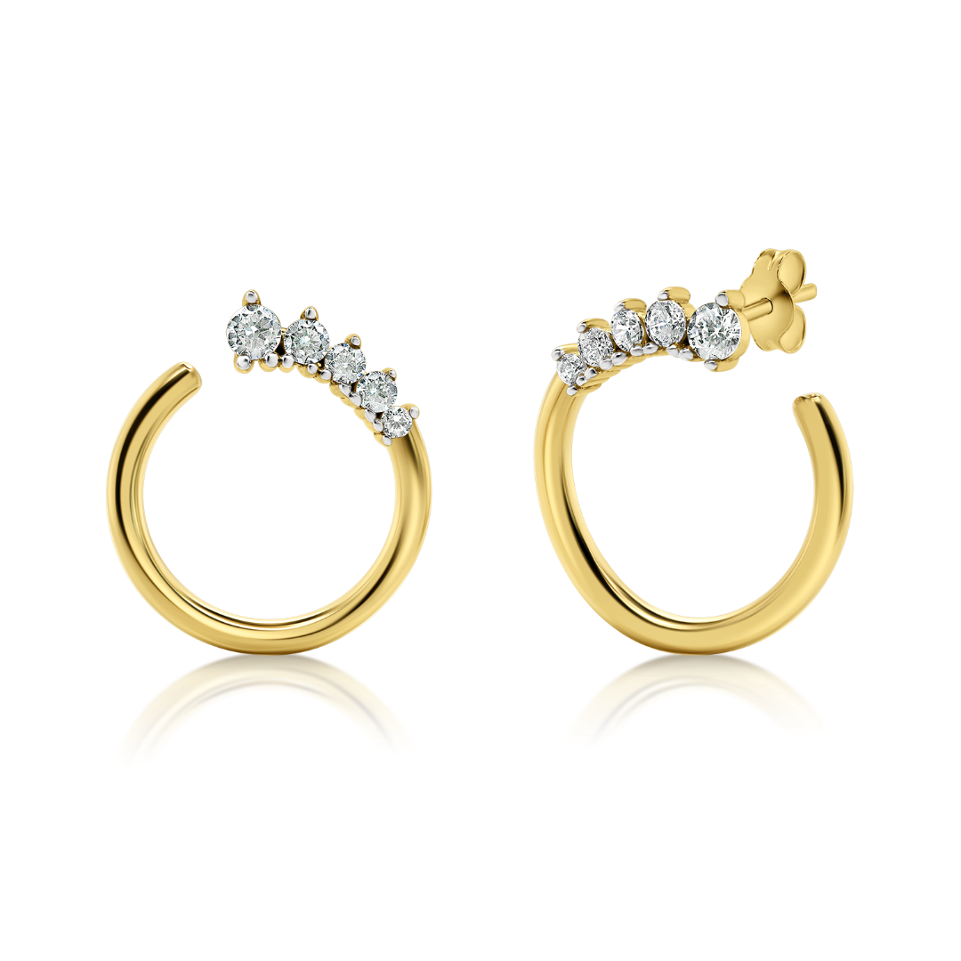 Cercei din aur galben de 14K cu pietre Cubic Zirconia albe