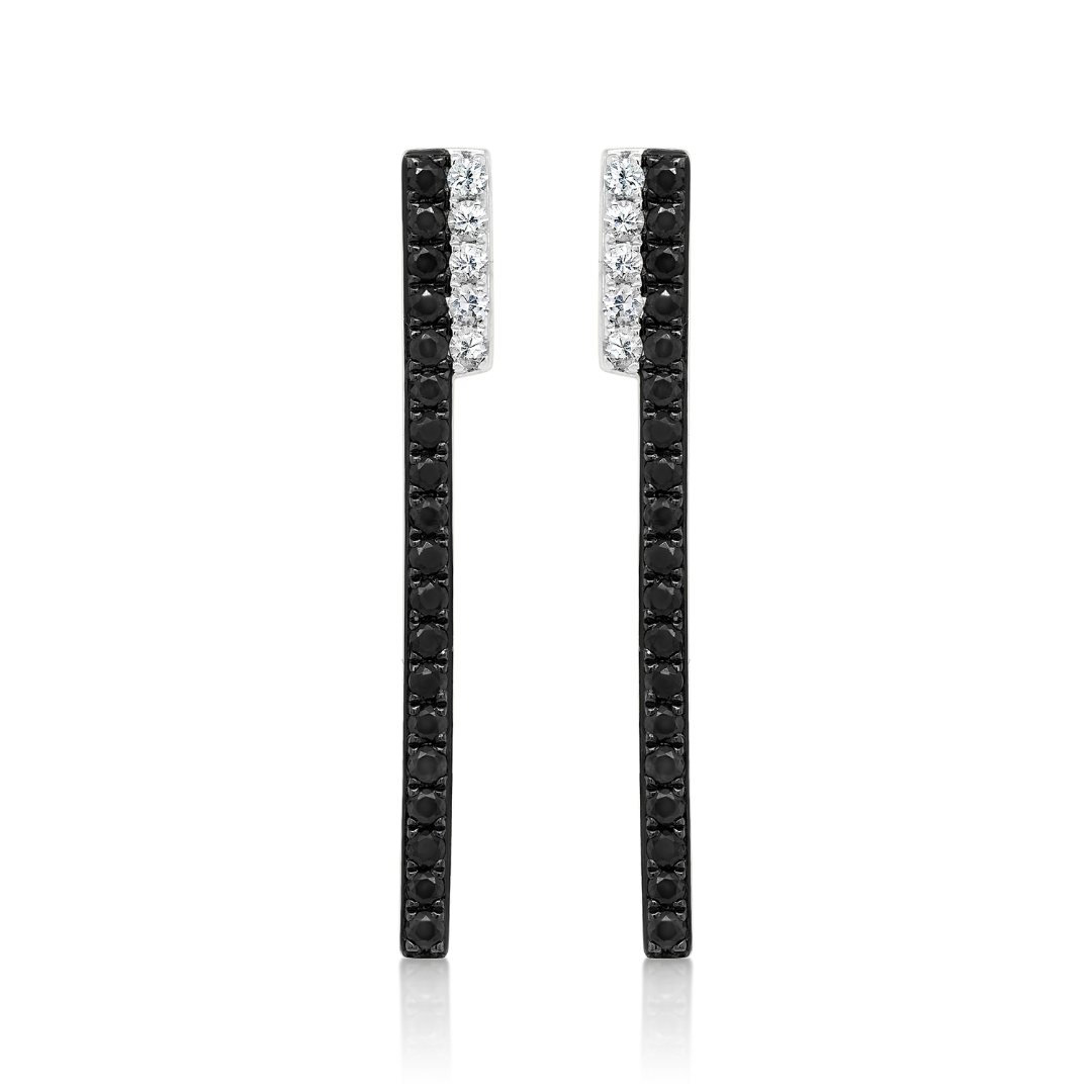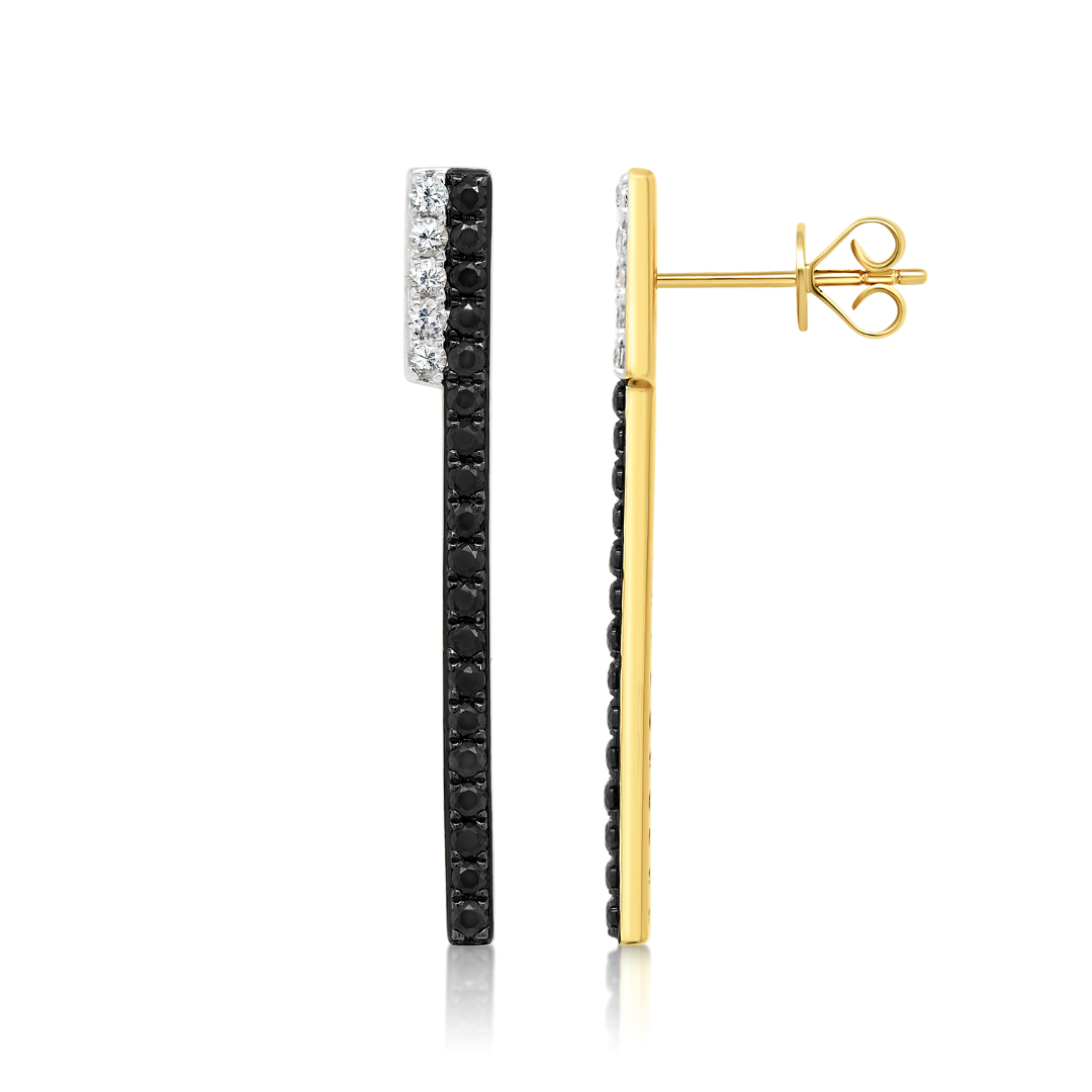 Cercei din aur galben de 14K, încrustați cu 10 Safire albe de 0.21ct și 38 de Safire negre de 0.78ct.