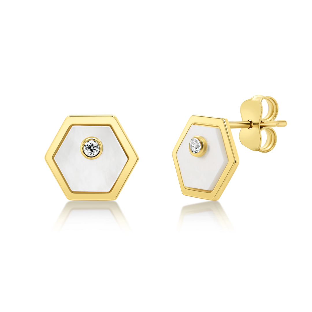 Cercei din aur galben de 14K cu Sidef și pietre cubic zirconia.