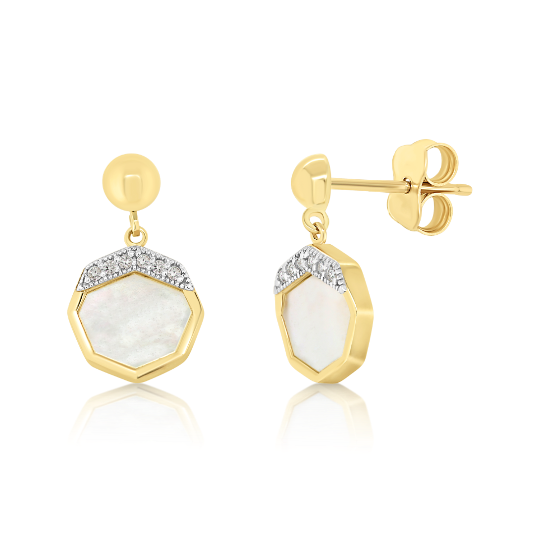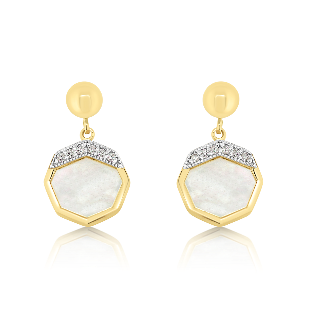 Cercei din aur galben de 14K, cu Sidef și pietre Cubic Zirconia.