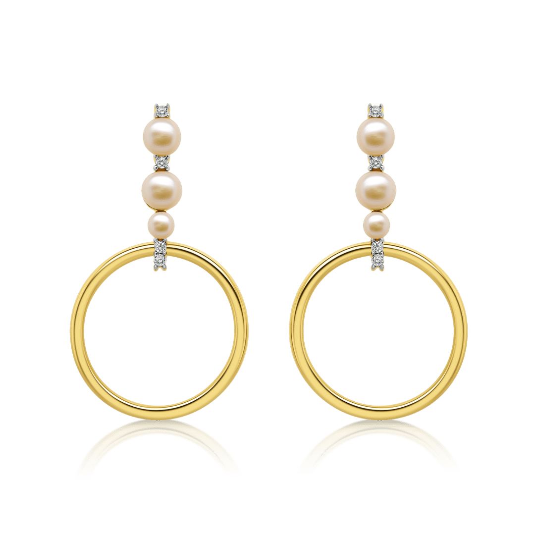 Cercei din aur galben de 14K cu Perle de cultură și pietre cubic zirconia.