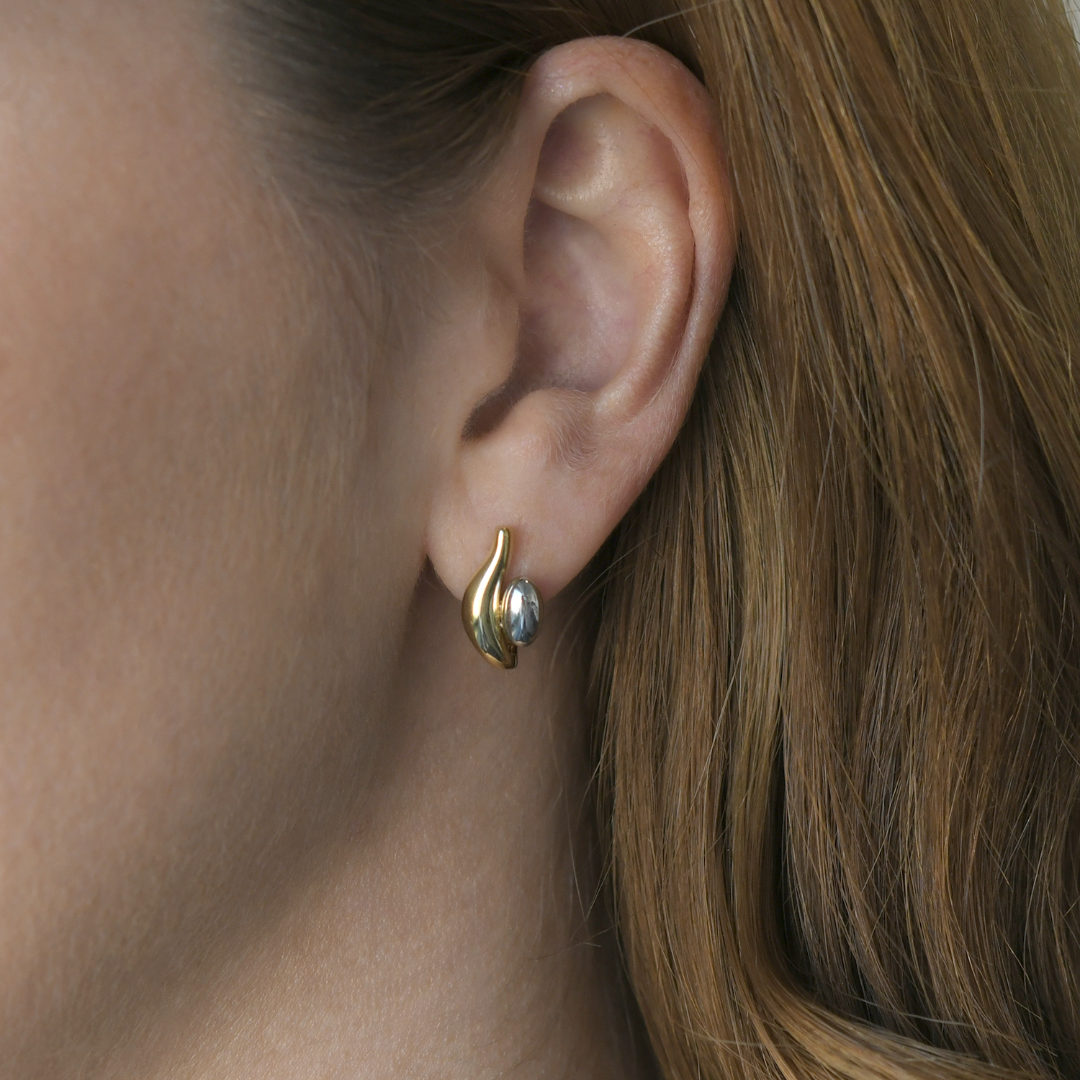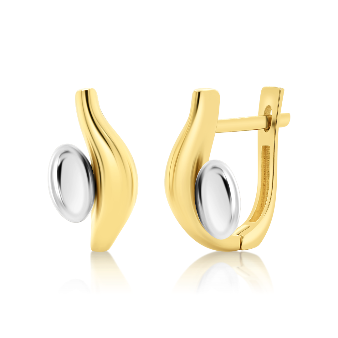Cercei din aur galben de 18K cu elemente din aur alb.