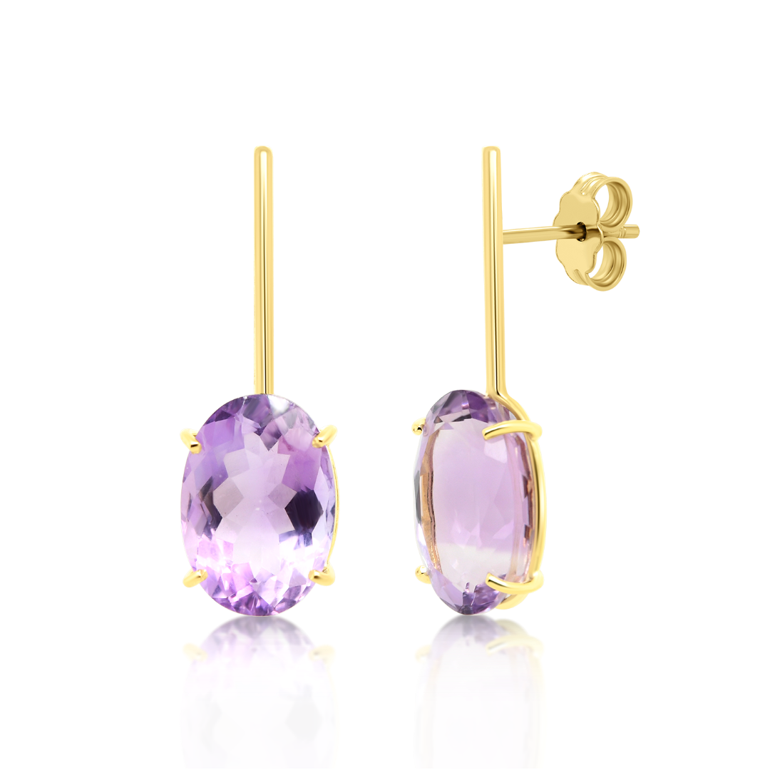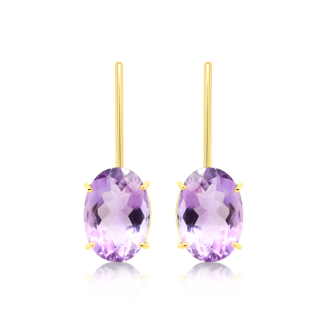 Cercei din aur galben de 18K cu două Ametiste naturale de 12.5ct.