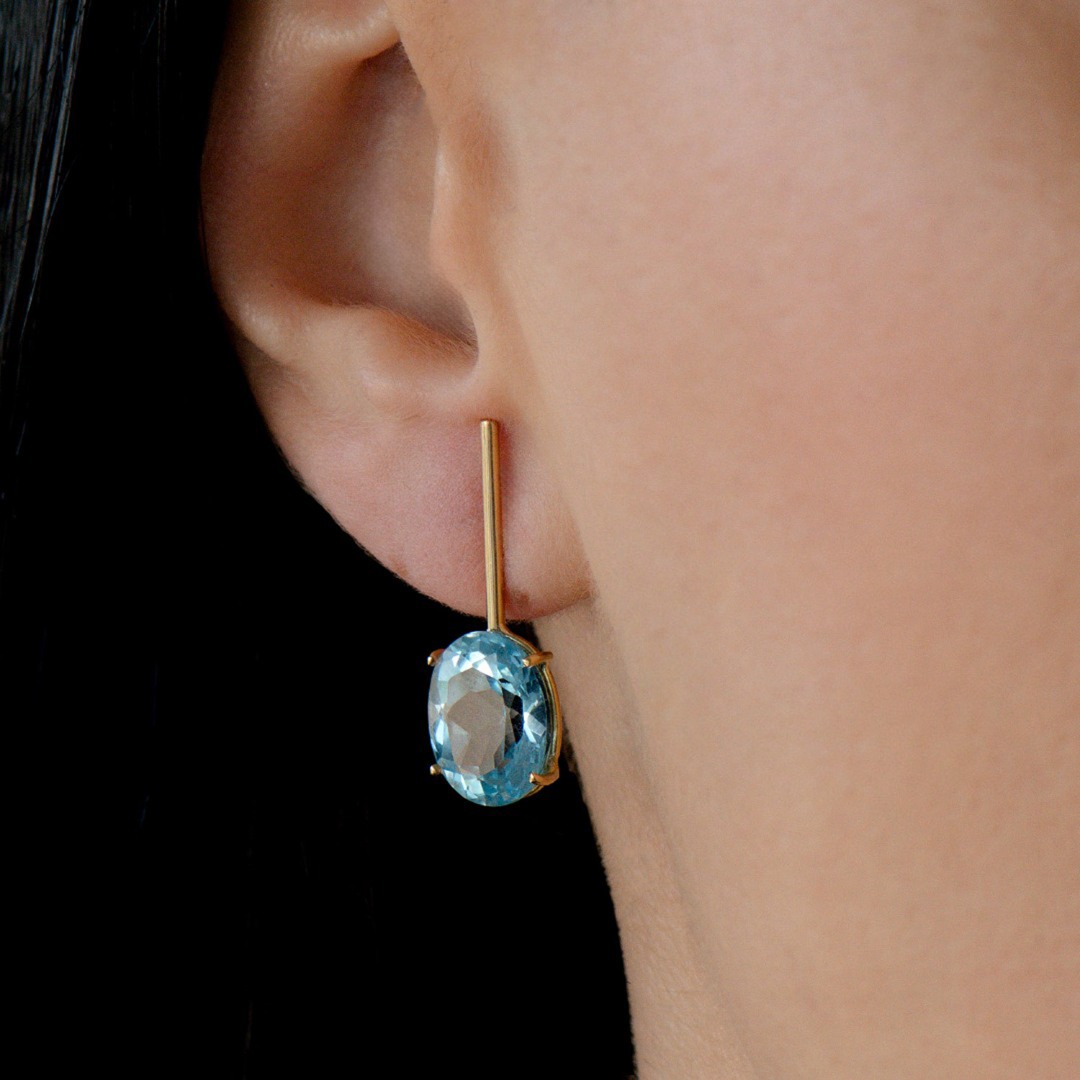 Cercei din aur galben de 18K cu Topaze albastre naturale de 11.50ct.