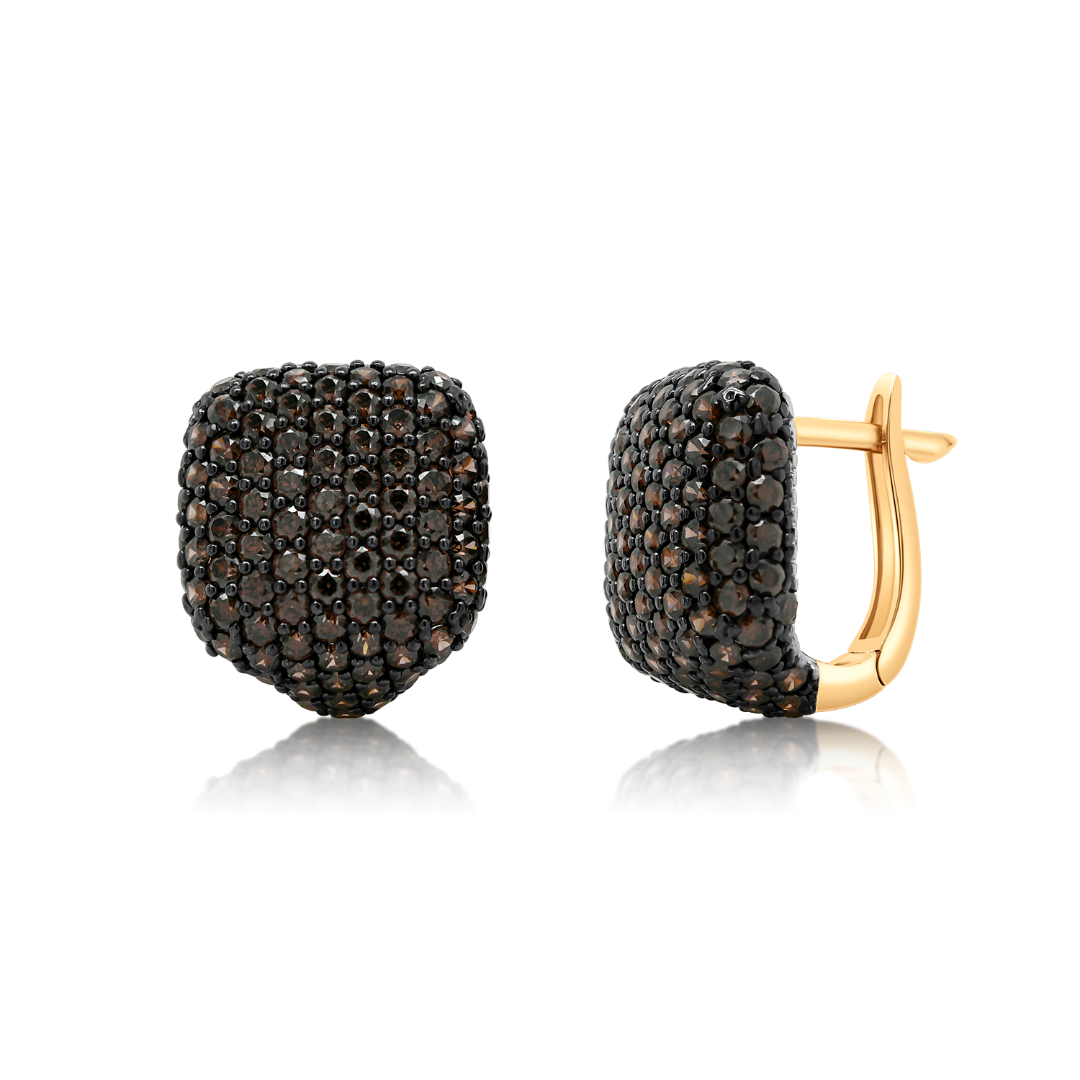 Cercei din aur roz de 14K cu pietre cubic zirconia maro și rodiu negru.