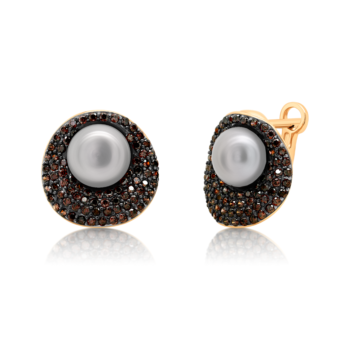 Cercei din aur roz de 14K cu Perle de cultură și pietre cubic zirconia.