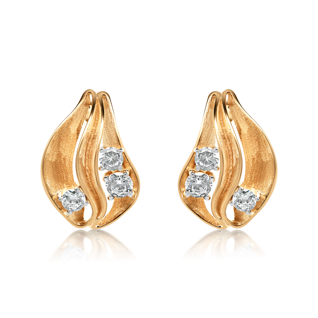 Cercei cu efect satinat din aur roz de 14K