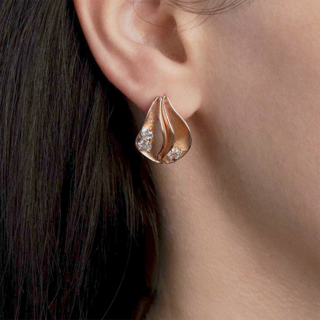 Cercei cu efect satinat din aur roz de 14K.